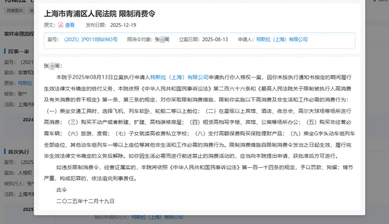还记得之前车展特斯拉维权事件吗?最近双方的名誉权纠纷案件又更新了,站车顶喊“刹车失灵”的维权女车主被限制高消费,申请人为特斯拉。赢特斯拉的官司是要回数据,但是说刹车失灵这事败诉,今年8月被执行了17.23万元,只能说冲动是魔鬼啊......小伙伴们怎么看这个案件,站哪一边儿?评论区讨论讨论。【来自懂车帝车友圈】