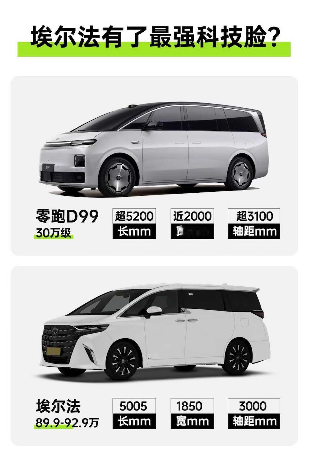 零跑版“钱江埃尔法”,D99这是要当路上的湾流公务机? 9系旗舰SUV竞争之激烈,不需要我再赘述什么。而最近,这9系旗舰之争又蔓延到了MPV市场,尤其是在设计领域,不少厂商是暗自发力,把MPV也打造成了“湾流”公务机一般的陆上头等舱,其中就包括了刚完成首秀的零跑D99。 尽管D99整车长度超过了5.2米,并采用了近2米的宽体打造,但车辆还是通过富有张力的型面曲线、纯平侧窗,乃至无阶差的车门设计,塑造出了类似湾流公务机的低风阻形态与低风噪性能。 与此同时,D99也像埃尔法一样,既看重整体,也死磕细节。在科技自然美学2.0设计语言下,车辆前脸采用了超椭圆数字曲面,在楔形结构中占比极低,搭配标志性的三段式大灯+百万像素DLP投影大灯,科技与实用性都没落下。同时,车辆搭配了米其林轮胎的19英寸镜面轮毂、在D柱上完成了粗壮镀铬包围,埃尔法所具有的那种精益求精,D99现在以30万级的定位都一一兑现了。 在整体上展示豪华、在细节上增加了科技含量,这回零跑打造的这台“钱江埃尔法”,我看是真要成陆上的公务机了。