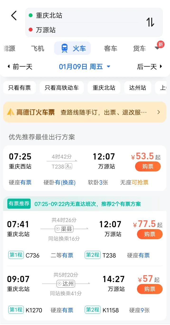 达州万源除了没有高铁其实交通还是比较发达的,特别是S1成万高速巴中至万源段通车后,目前万源开车来往省会成都只需5小时左右,万源开车走G65包茂高速来往重庆只需4小时左右,万源开车走包茂高速来往陕西安康只需2小时左右,万源站是襄渝铁路一个重要的站点,重庆西站至万源的T238次列车只需4个多小时直达,成都东站至万源站的D166只需4个多小时直达万源站,除此之外万源还有直达江苏和上海等地的直达火车,万源境内还有210国道和347国道穿市而过,万源至城口的等级公路也通车多年,万源作为一个川渝陕三省市交界的群山环绕的县级市交通还是非常不错的。