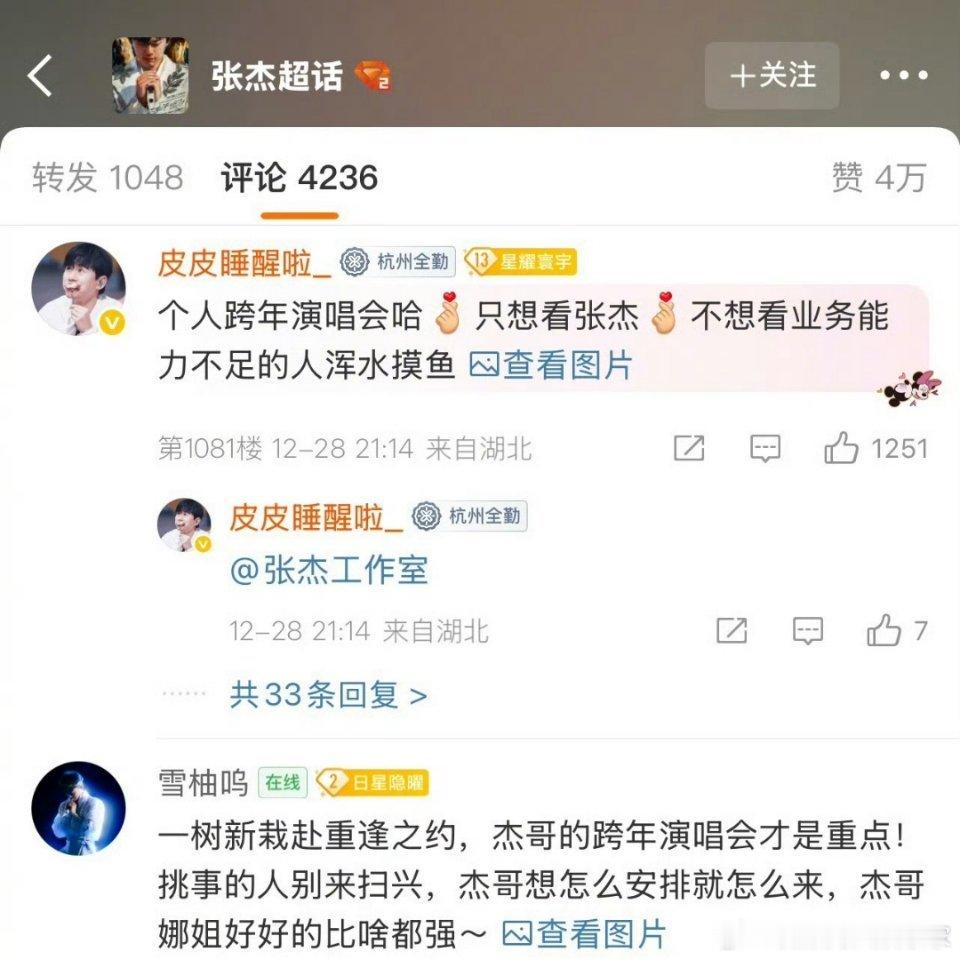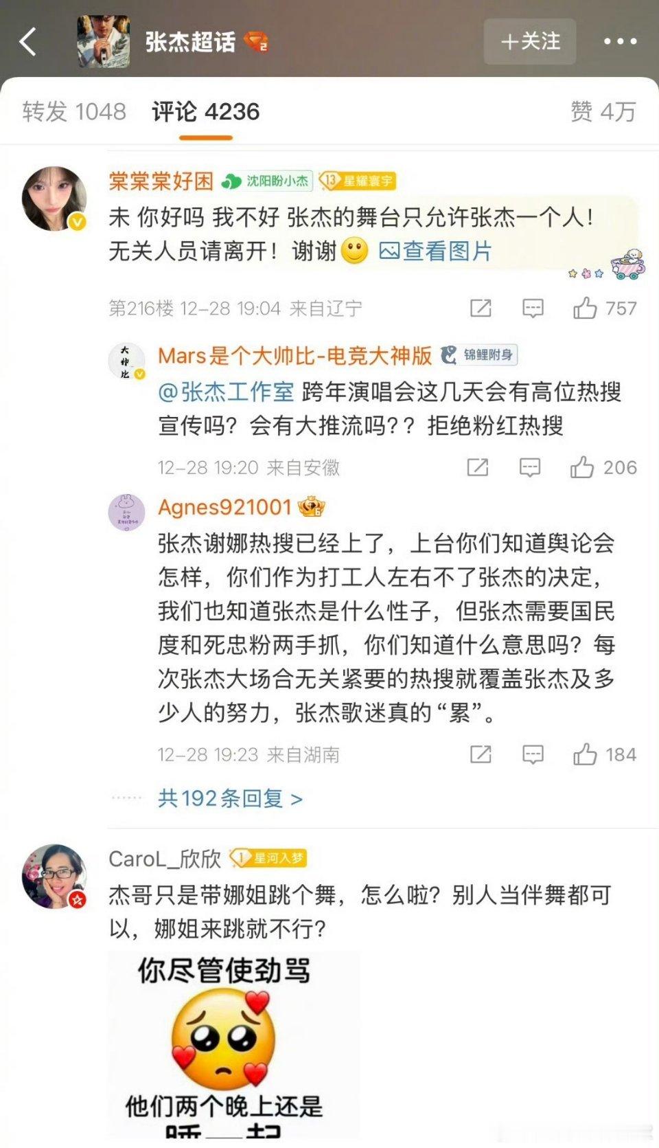 其实我也不明白张杰也不是爱豆,而且人家婚姻幸福美满的,正常的都是爱屋及乌吧,况且谢娜也是很好的人啊。人家合.法.领.证的夫妻,为啥就不能同台跳舞了?这不等于是演唱会请的嘉宾嘛,谢娜只是伴舞,又不是全程都在台上,真的不理解为啥说不能请她的,那以后张杰演唱会邀请其他歌手也别来了,反正粉丝抵.制,只想看张杰。。。张杰梦女张杰工作室评论区
