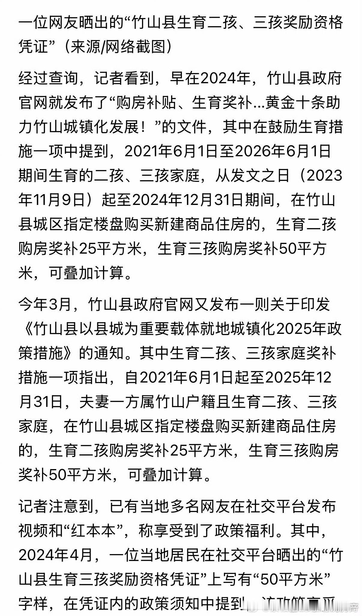 湖北竹山县在规定的期限内生育3胎,可补贴75平的房子。类似的政策我们全湖北省都有,我们县是补贴6到8万。