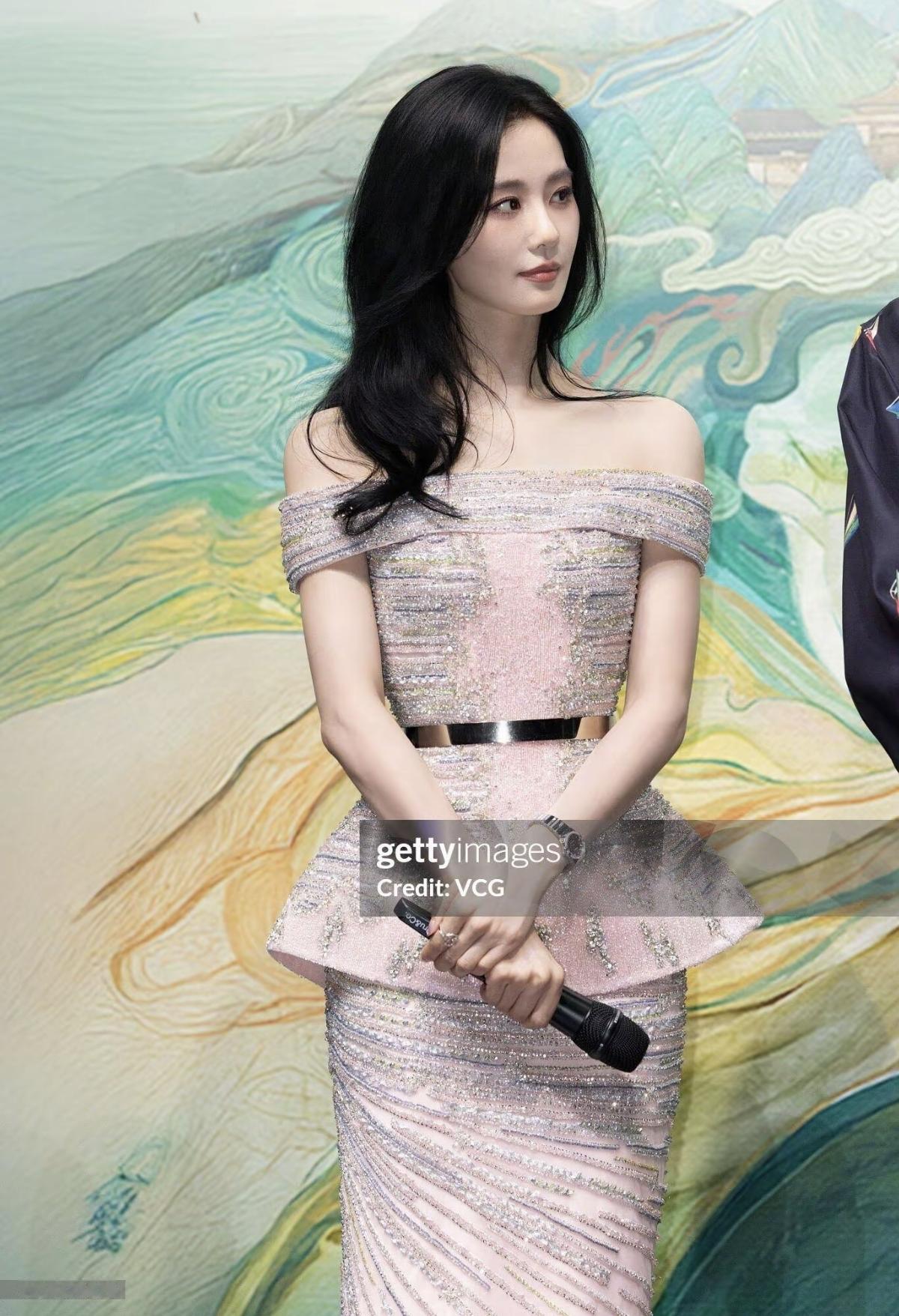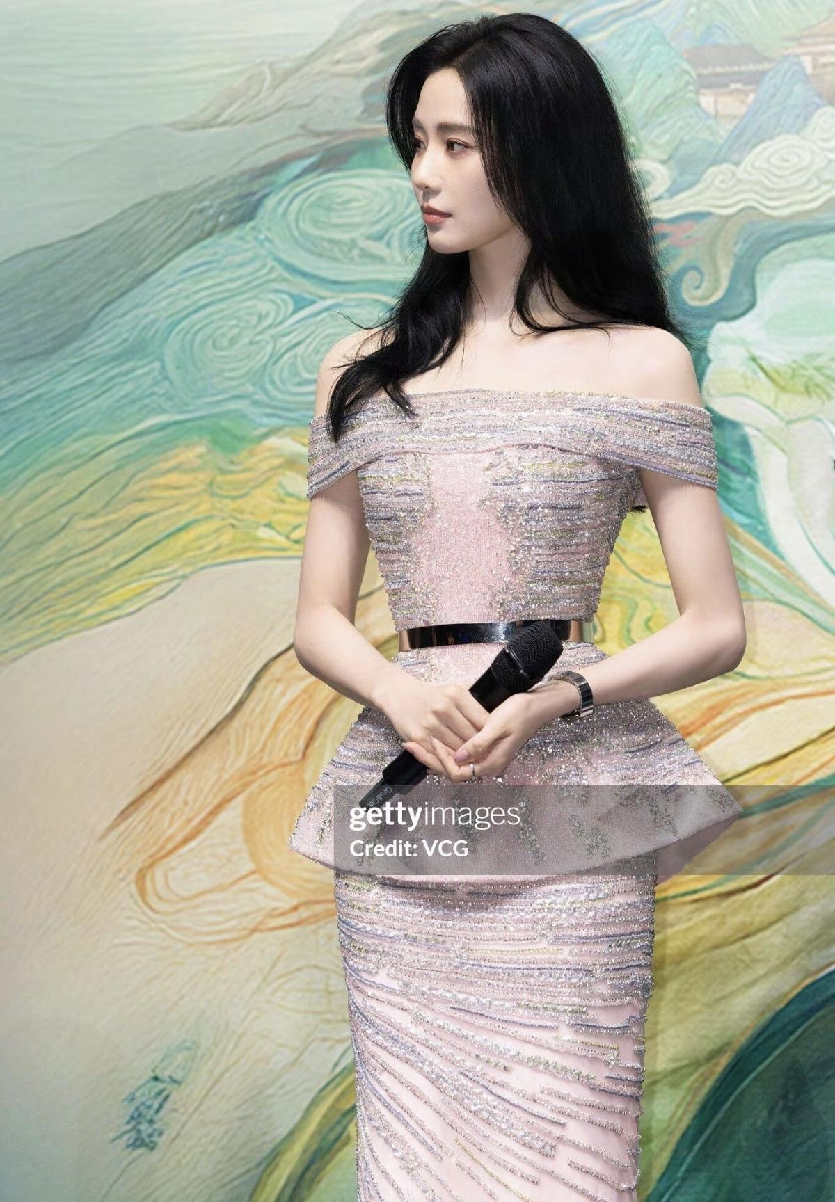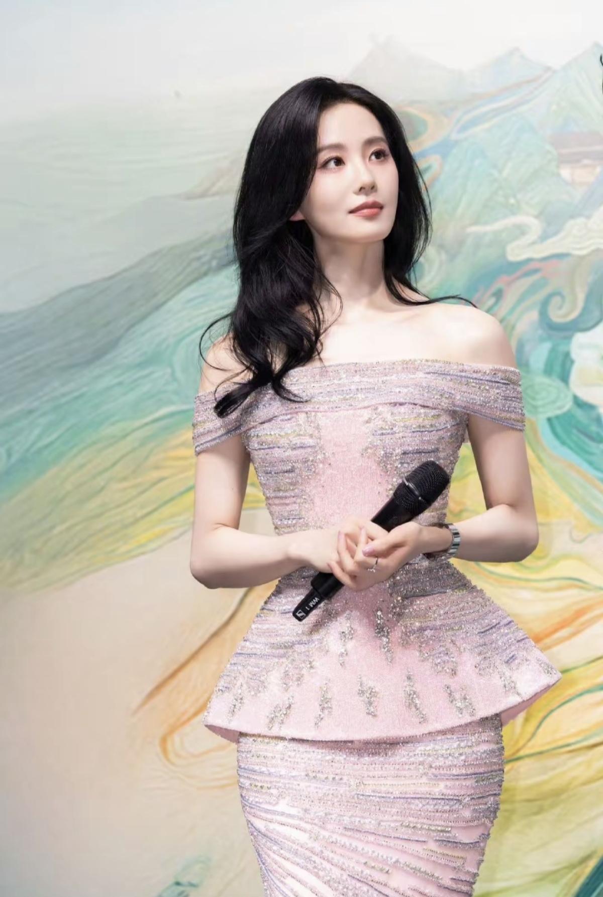 粉色闪钻鱼尾礼裙,一字肩设计露出精致肩颈线,裙身缀满闪钻与斜纹褶皱,鱼尾剪裁勾勒出窈窕身姿,搭配黑长卷发,温婉中透着精致华丽[比心][给力]娱乐明星