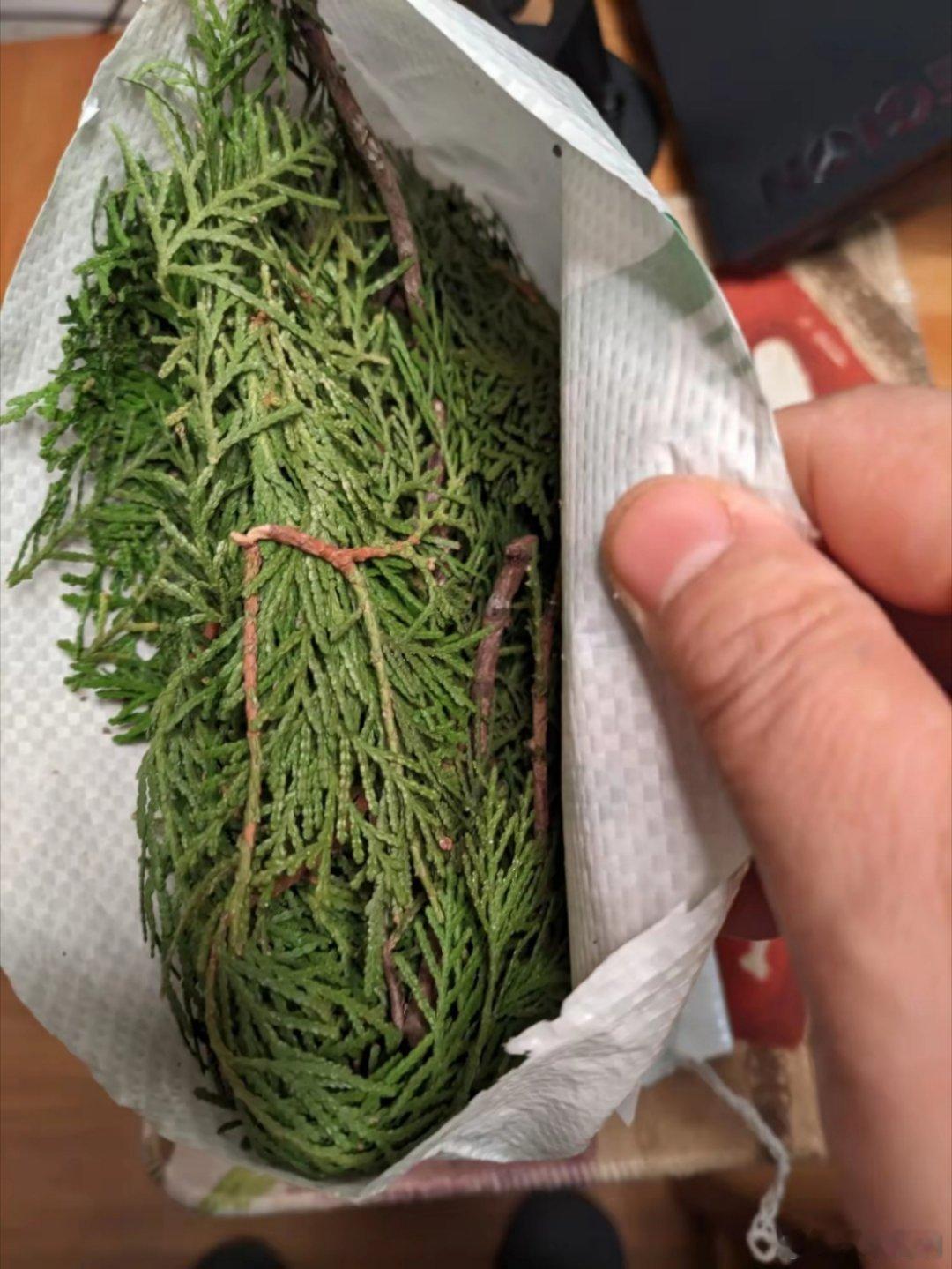 为熏腊肉,有人网购了柏树枝。
