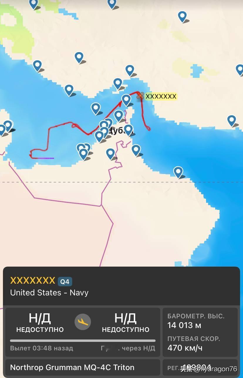 🇺🇸两架美国海军MQ-4C无人机目前正在执行不同的任务: - 一架在南海上空 - 另一架在阿曼湾和波斯湾上空