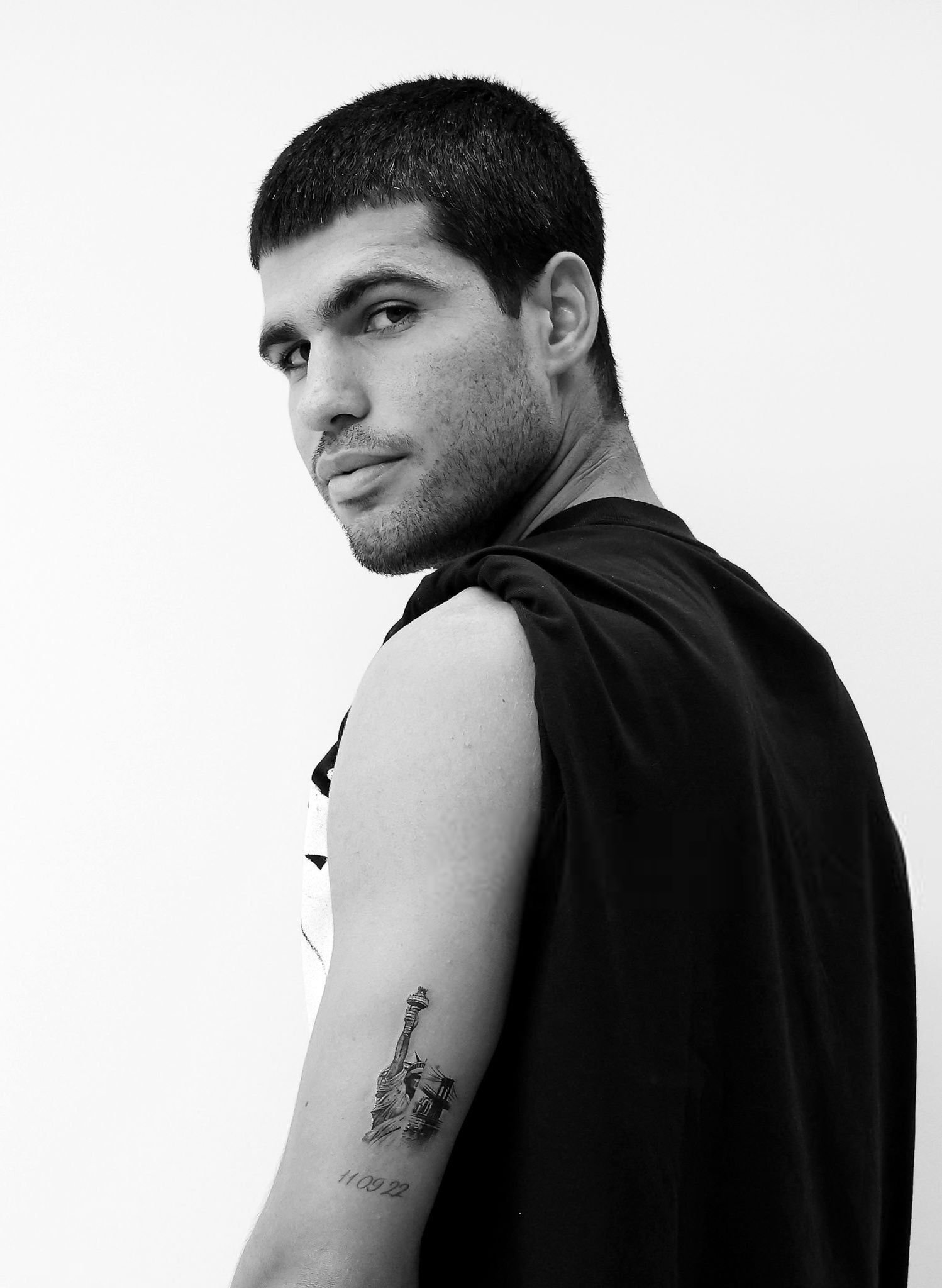 阿卡新纹身首曝艺术照📷纪念第二个美网男单冠军🗽澳网之后有机会再纹个别的么阿尔卡拉斯新纹身babolatfamily