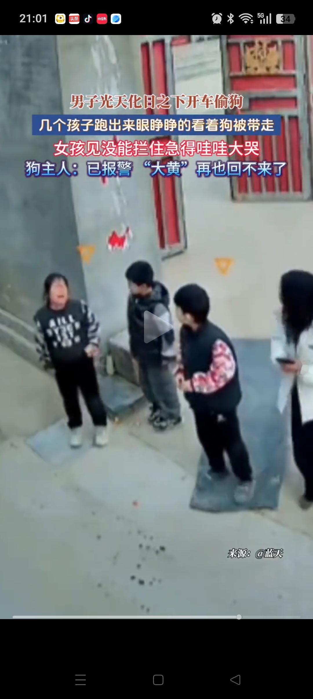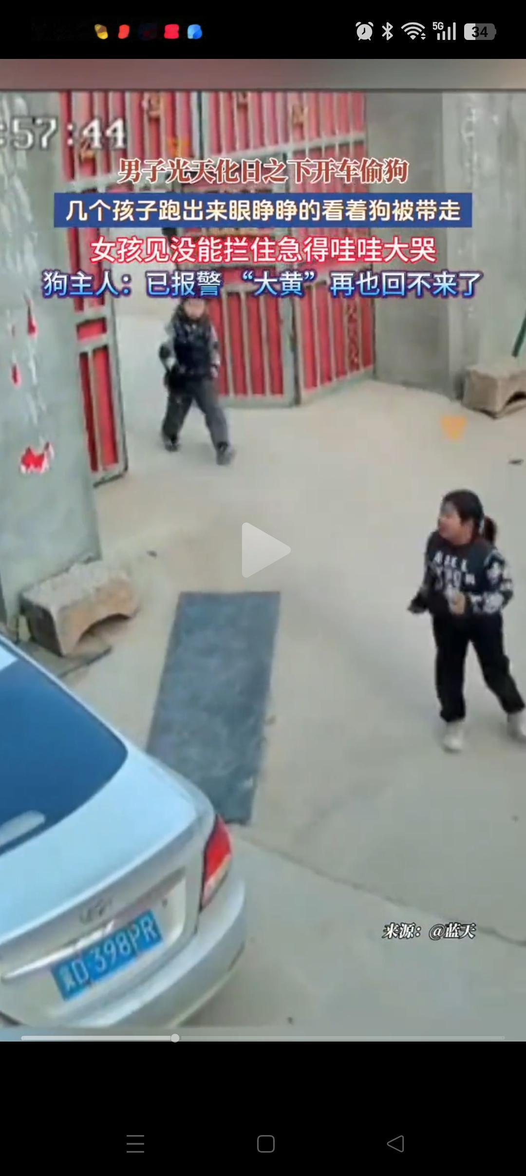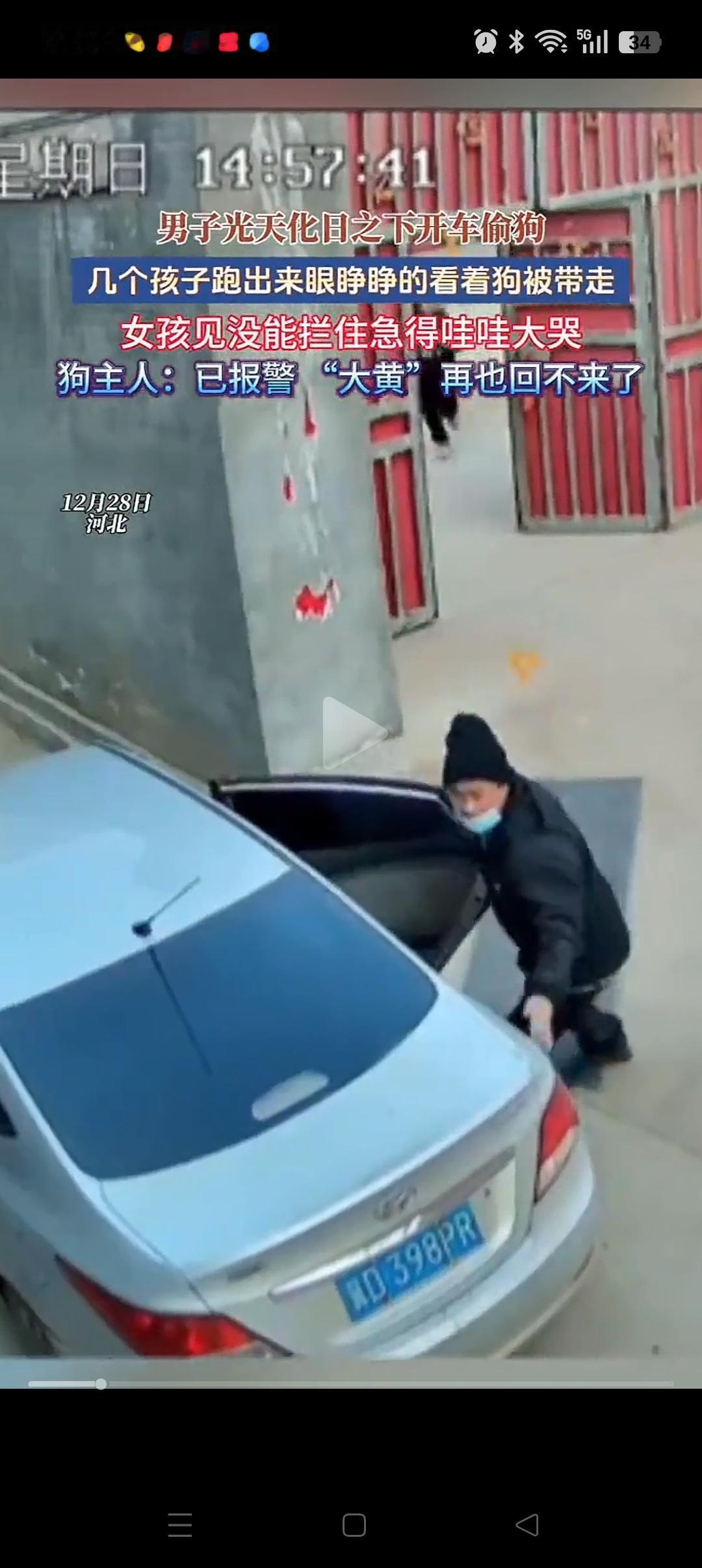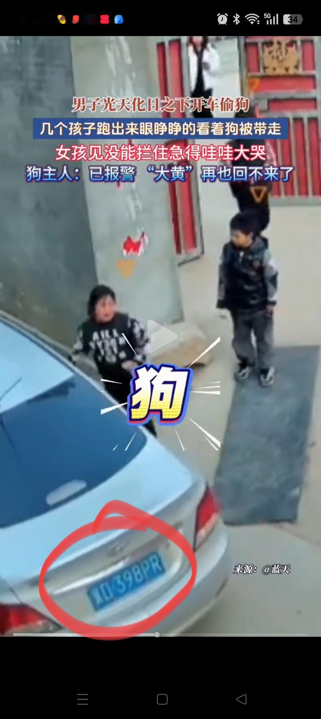 这下好了, 应该很快就能抓到了吧! 河北,一群小孩正在院子里玩游戏,不料一辆小汽车突然停在了院子外,把蹲在门口的小黄狗给抓住,丢进了车里。 等小朋友们发现,立刻就追了出来,但小汽车还是扬长而去。 小姑娘伤心的急着跺脚,蹲在地上哭,因为她可能再也见不到她的小黄狗了。 幸好从视频里可以清晰的看到车牌号,相信只要告知帽子叔叔,就能够立马找到。 最后提醒大家:马上就要过年了,一些喜欢偷狗的人总是很嚣张,希望大家都要看好自家的狗狗。 这个人一看就是惯犯,必须严惩。。