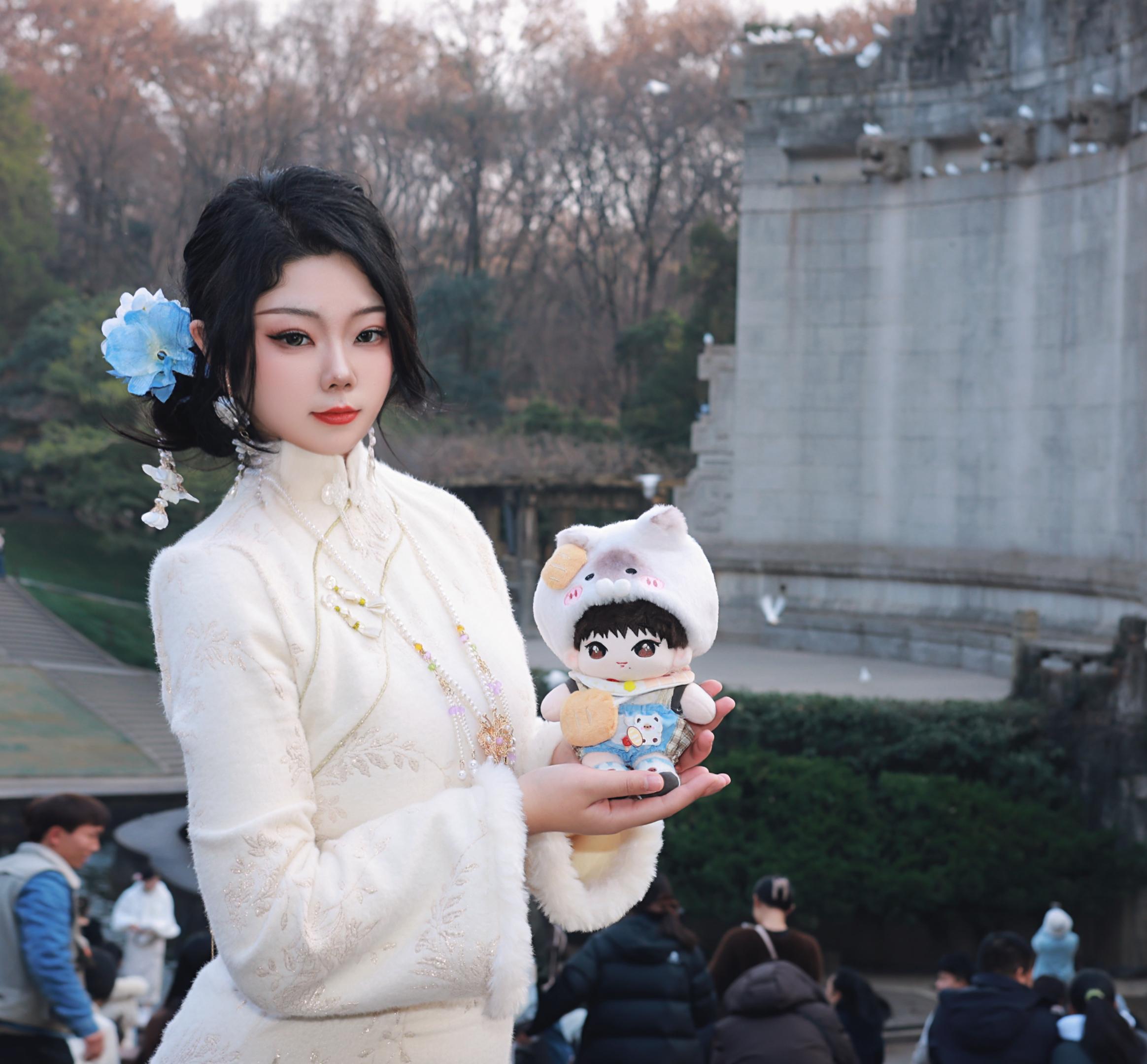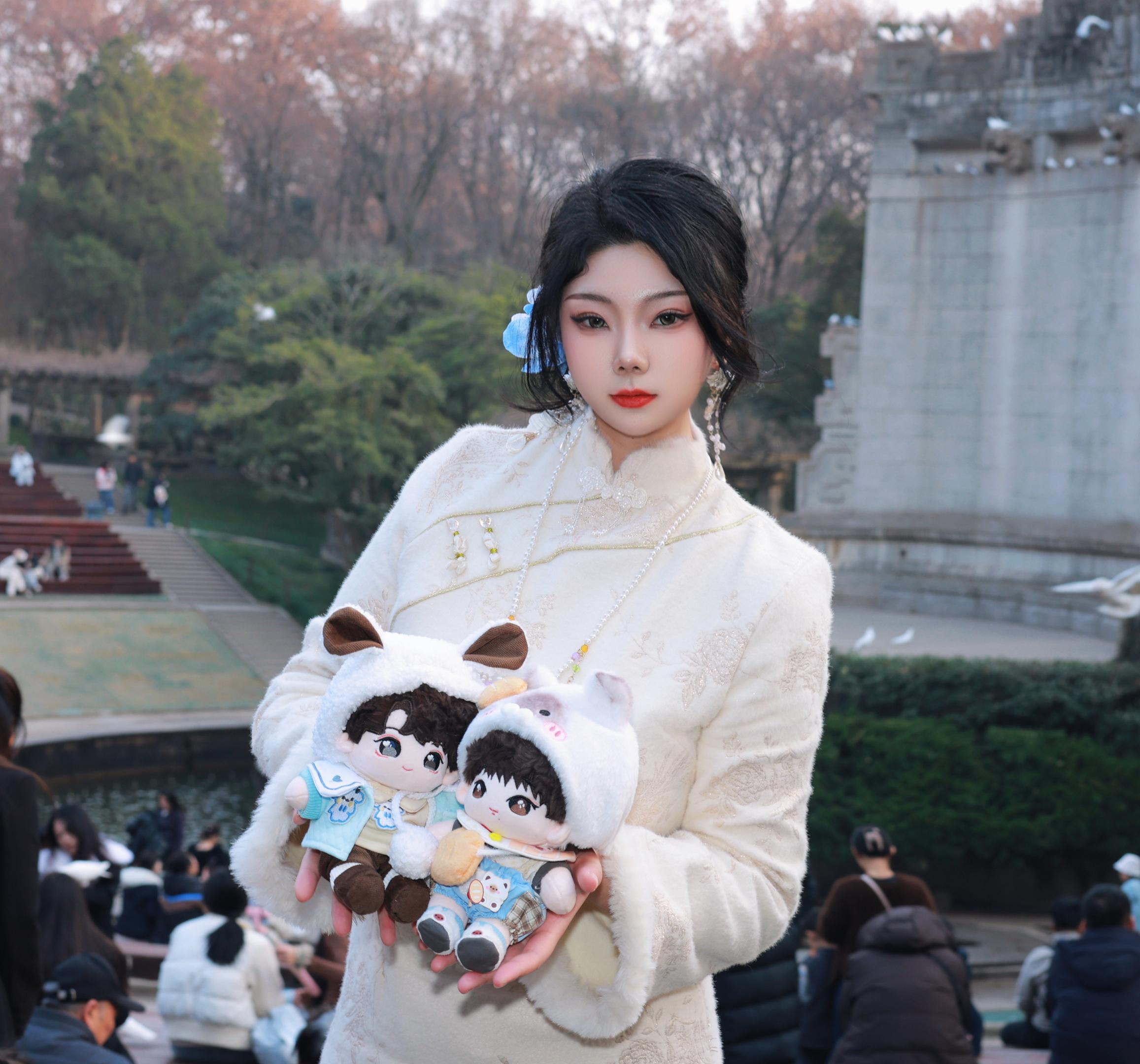 今天在路上和娃娃拍照 路过一个阿姨问我这俩娃娃是谁 我说是杨博文和王橹...