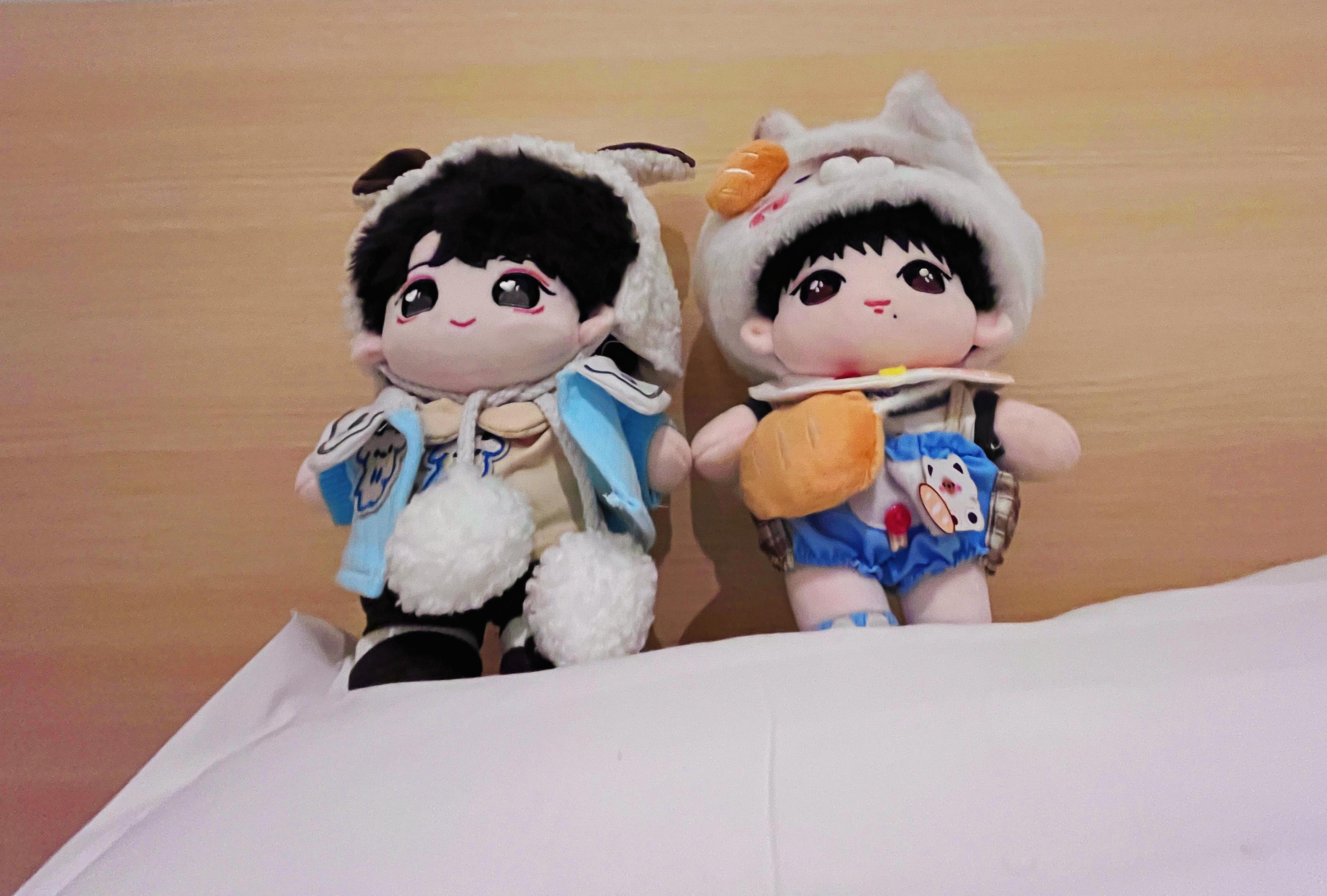 今天在路上和娃娃拍照 路过一个阿姨问我这俩娃娃是谁 我说是杨博文和王橹杰 阿姨用手机搜了之后说这俩小孩真帅 好可爱(❁´3`❁)