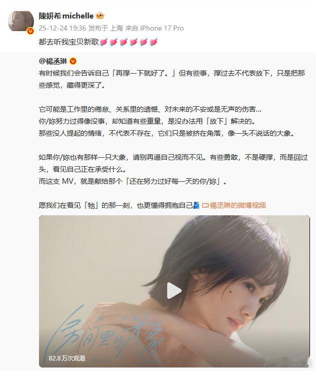 谁懂这个陈妍希有多好点进微博每天两眼一睁就是转,姐姐就是这么人美心善和姐姐一起支持好朋友的作品呀