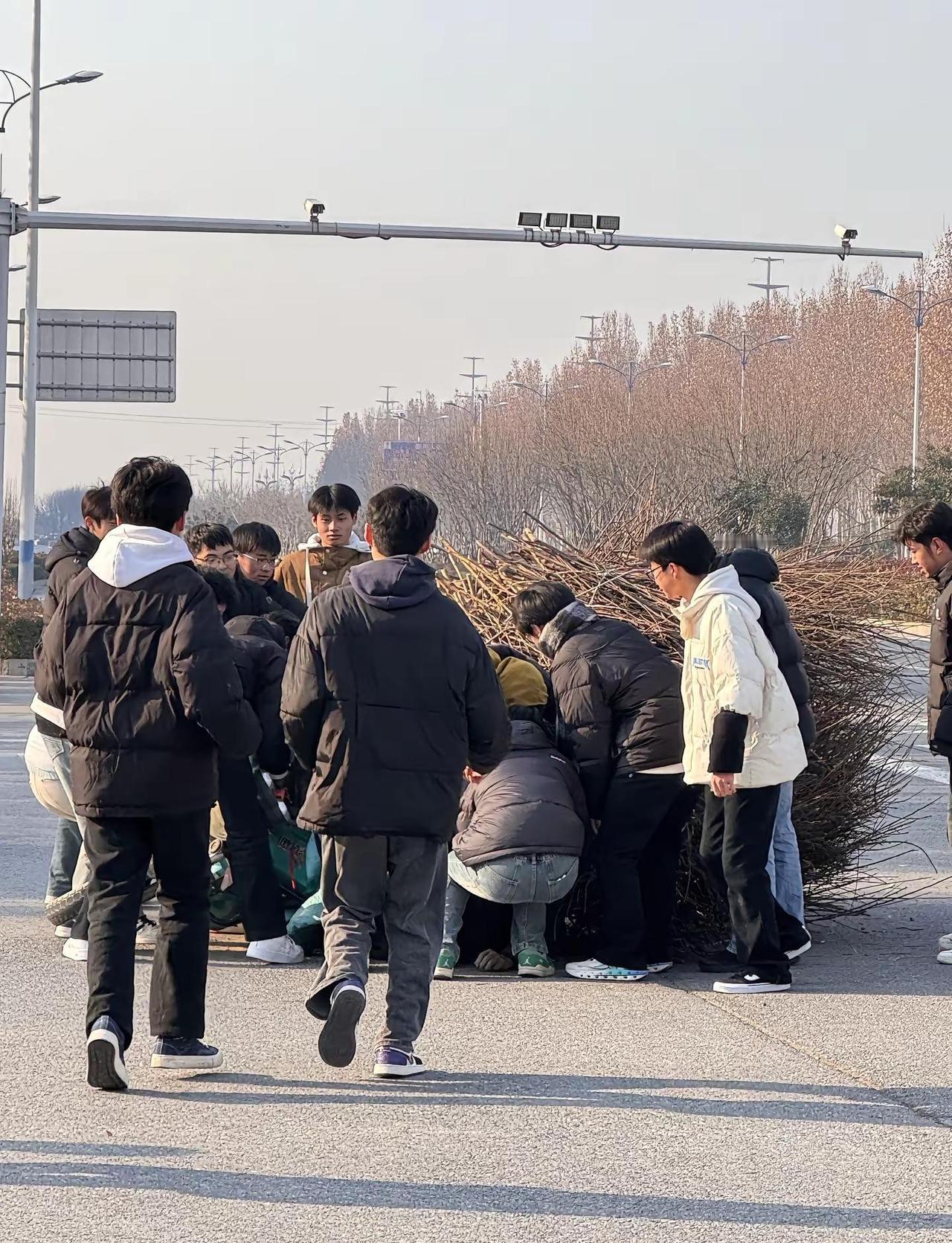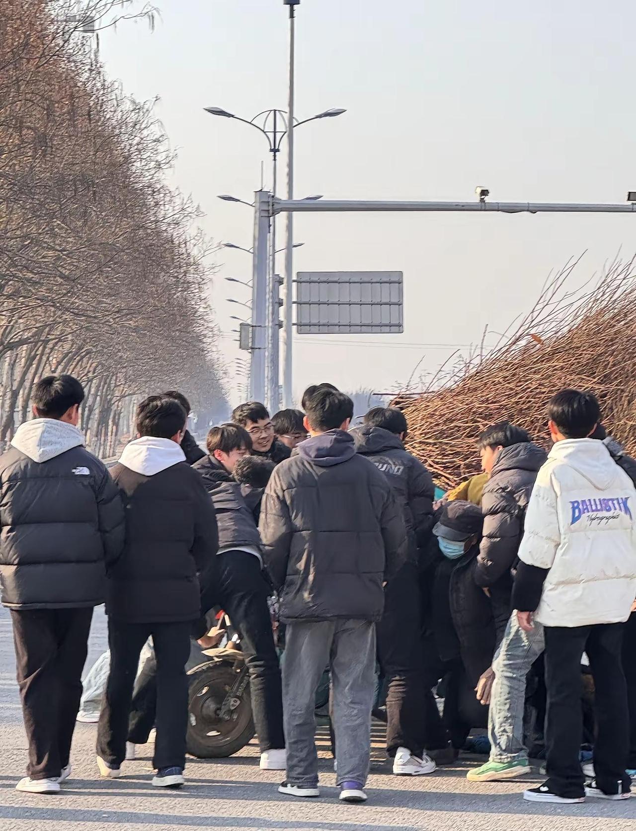 会考路上,一辆满载干树枝的三轮侧翻。 孩子们,不管学习成绩如何,在你冲向侧翻的车子使出全身力气帮助爷爷奶奶时,在我的心里已经满分了。
