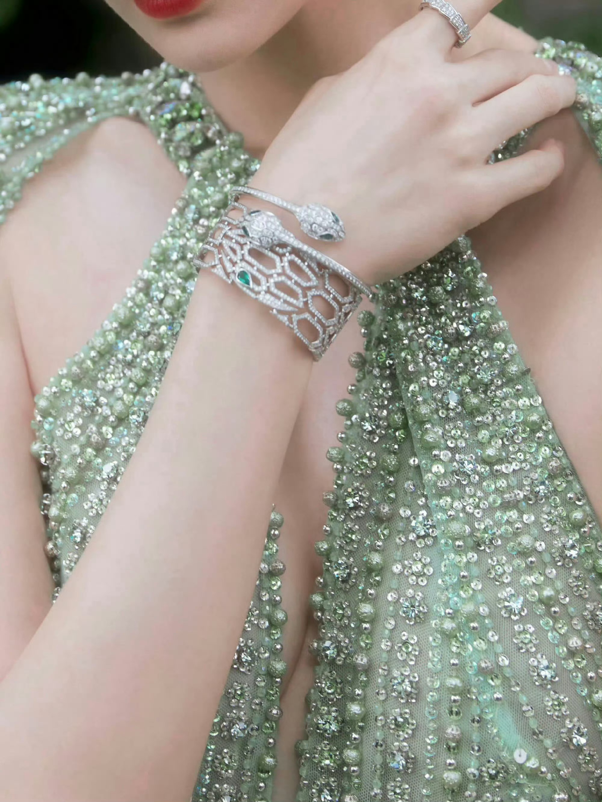 礼服在她身上仿佛有了灵魂,利落剪裁勾勒出完美身形,古力娜扎一出场,就是红毯上最