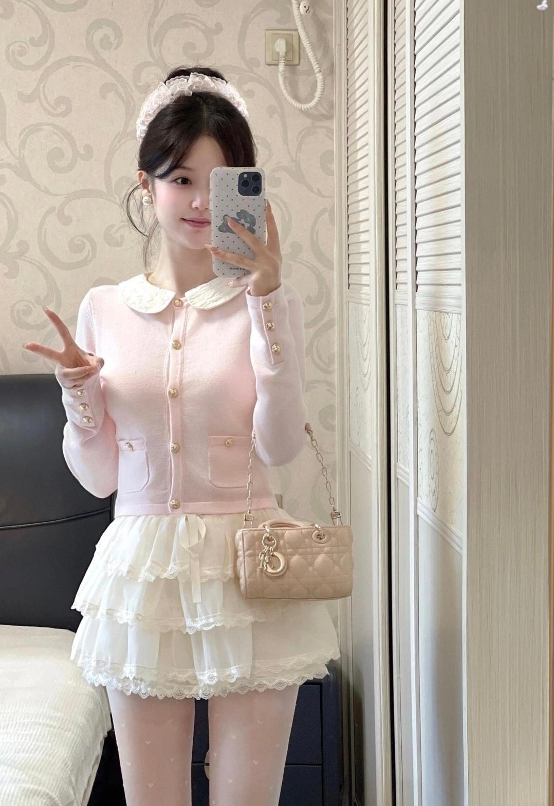 紫调针织衫撞上波点半裙,是甜酷交织的日常呀