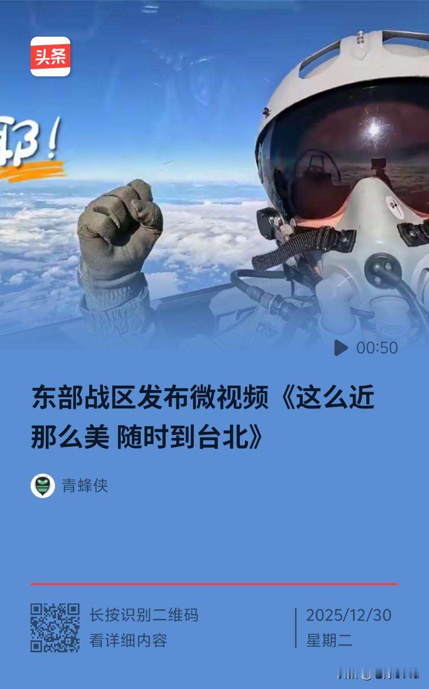 2025年12月29日,东部战区开启“正义使命 - 2025”演习,同时发布微视频《这么近那么美 随时到台北》。该表述引发各界关注,蕴含深厚意义: ● 温情喊话:民心的回声:微视频字句无硝烟味,满是对宝岛风光眷恋,引发两岸同胞共鸣。如台北网友忆起外婆说的大陆故乡,不少台胞分享两岸探亲故事。2025年前三季度闽台往来旅客增多,体现两岸同胞走近的心声。 ● 实力背书:强硬的底气:台退役将领栗正杰称“拍到就能打到”。底气来自东部战区常态化战备警巡和此次演习,覆盖台岛周边多海域空域,解放军实力是守护和平统一底线、震慑分裂势力的保障。 ● 融合根基:通出来的民心路:“这么近”是“应通尽通”政策铺就的融合之路。厦金大桥等工程推进,福建发布多项两岸共通标准、实施惠台政策,让两岸距离拉近,“随时相聚”成可能。 ● 历史必然:统一是大势所趋:台湾光复80周年活动表明两岸曾携手抗日,是一家人。2025年前三季度两岸贸易额增长,说明两岸经济共生共荣,统一是不可逆转的潮流。 “这么近那么美,随时到台北”,既表达对团圆的呼唤、对分裂的警示,也展现解放军维护国家主权和领土完整的决心。台湾是中国领土一部分,统一大业势不可挡。