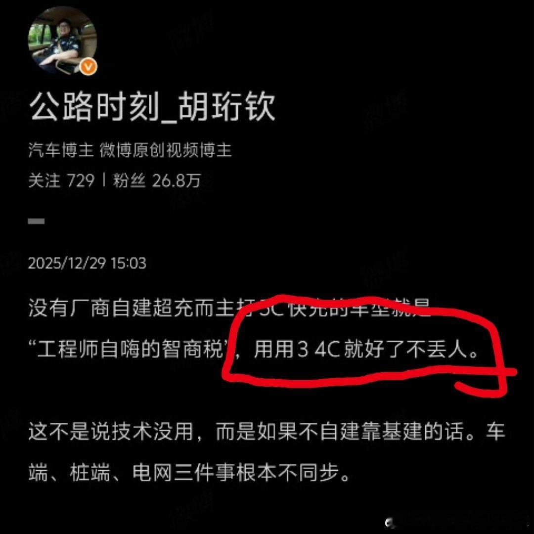 没毛病呀,没有自建桩的品牌给自己的车用用3 4C电池就好了嘛。这样整个电池和周边设备的成本也能下来,还能再降降价或者提升自己的利润率也好。