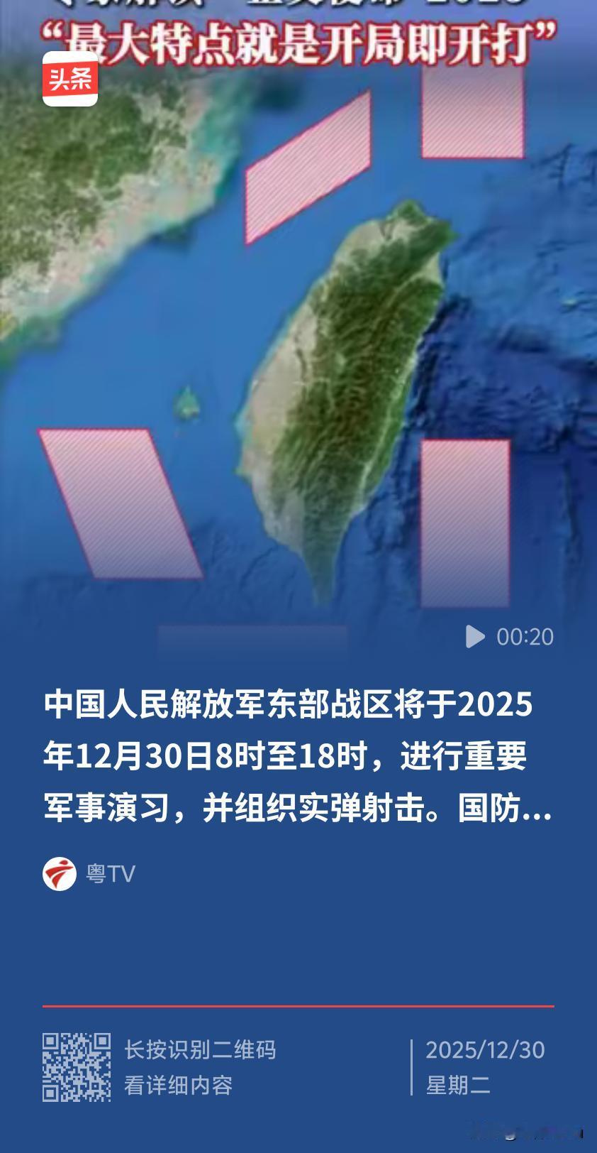围岛演习第2天,即2025年12月30日8时至18时,解放军东部战区将按计划在相关海域和空域进行重要军事演习并组织实弹射击。具体区域为以下各点连线范围内: 1. 北纬26°32′00″、东经121°40′00″,北纬26°32′00″、东经122°36′00″,北纬25°43′00″、东经122°36′00″,北纬25°43′00″、东经121°40′00″。 2. 北纬24°59′00″、东经120°04′00″,北纬25°39′00″、东经121°13′00″,北纬26°17′00″、东经121°13′00″,北纬25°37′00″、东经120°04′00″。 3. 北纬23°27′00″、东经118°14′00″,北纬23°27′00″、东经119°13′00″,北纬22°13′00″、东经119°44′00″,北纬22°13′00″、东经118°45′00″。 4. 北纬21°49′00″、东经119°16′00″,北纬21°49′00″、东经121°00′00″,北纬21°05′00″、东经121°00′00″,北纬21°05′00″、东经119°16′00″。 5. 北纬21°58′00″、东经121°40′00″,北纬21°58′00″、东经122°28′00″,北纬23°23′00″、东经122°28′00″,北纬23°23′00″、东经121°40′00″。 此次演习重点演练海空战备警巡、夺取综合制权、要港要域封控、外线立体慑阻等科目,是对“台独”分裂势力和外部干涉势力的严重警告,也是捍卫国家主权、维护国家统一的正当必要行动。