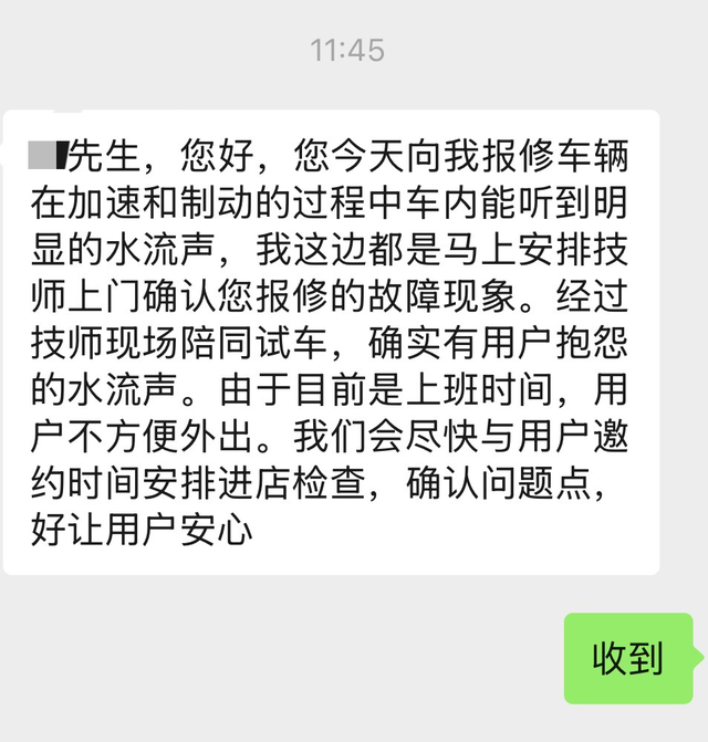蔚来24款ET7车辆进水行驶有水流声 我是蔚来24款的ET7,最近一周开车的过程中发现有明显的水流声,起初我没有太在意,以为是我后备箱里矿泉水的声音。但这两天越想越不对劲,毕竟满瓶的矿泉水,再怎么摇晃都不会有水流的波浪声。为了应证我的猜想,我今天爸后备箱掏空了,再仔细检查一下车内有没有遗留下水容器,都确认好以后,我试了下,水流声依然存在。于是我在ET7群友里吐槽了下问题,很快有相同遭遇的车友就来加我了。。。我们现在都非常焦虑, 第一,水从哪里来。 第二,对车辆的后续使用,是否存在重大安全隐患。 第三,该维保记录,是否会被后续评估为“涉水”对车辆有无贬值损失。 第四,该问题能都通过一次维保,彻底解决。 目前蔚来给到的反馈只有一句话,你车进来看看。说实话,我不敢,车进去了,他们把水放了,是否就算解决了呢?