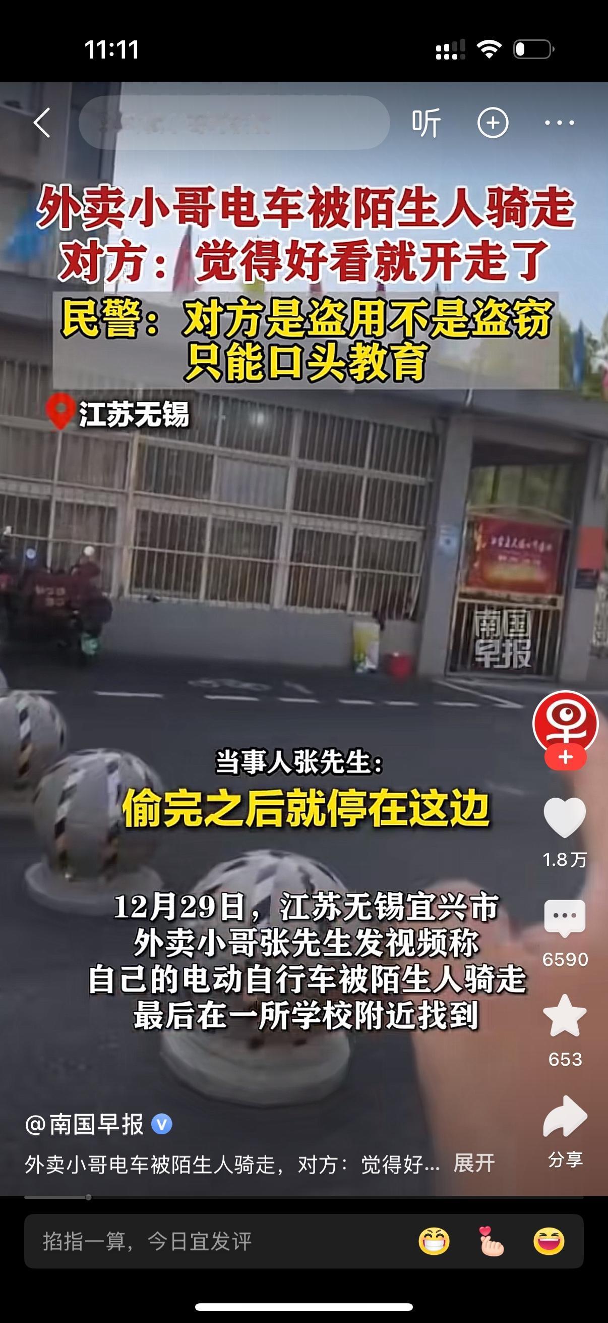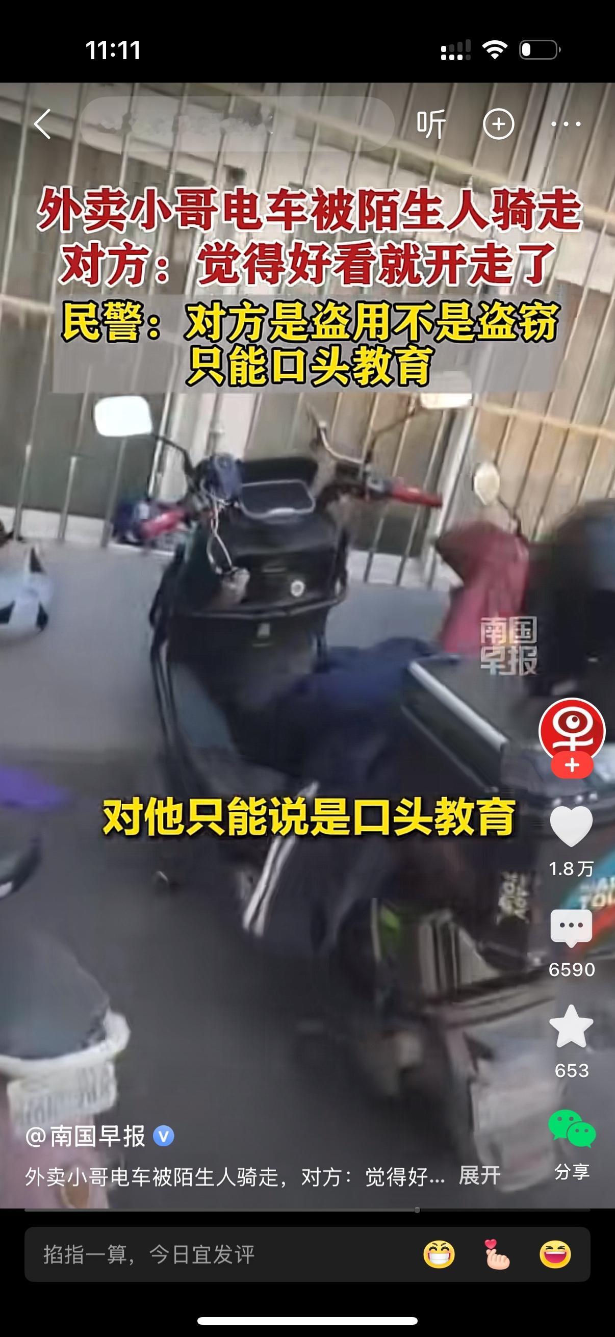 外卖小哥的电动车被陌生人骑走。帽子叔叔逮住那个人了,他说自己看这个车好看就骑了一段。帽子叔叔说这个不算盗窃,只是盗用,因为他没有进行买卖。只能对这个骑车人进行口头教育。小哥却不这么认为,他觉得这就是盗窃。