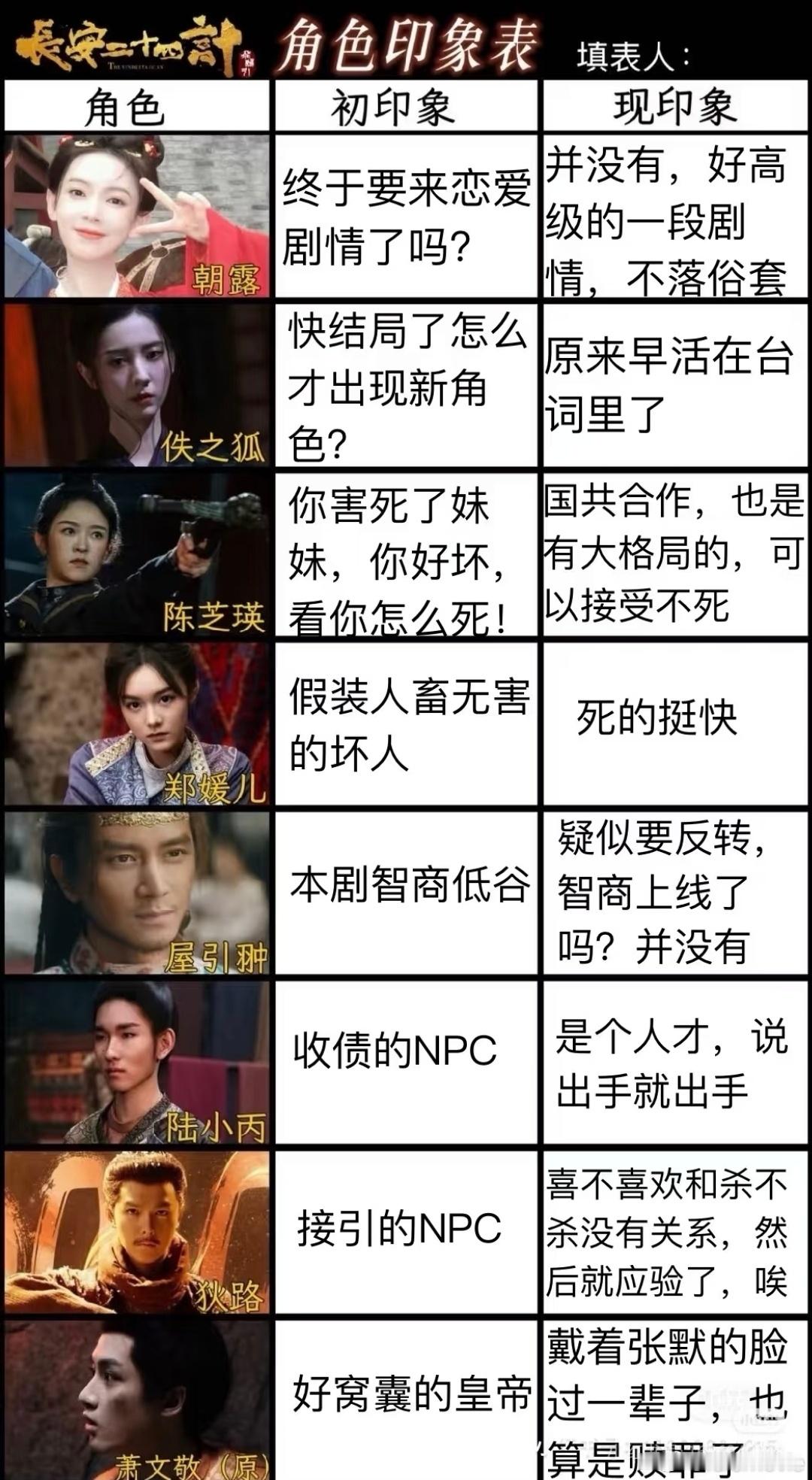 《长安二十四计》角色印象表,观众好可爱,大家好有才,24G的观众果然都有24G的脑子,成毅又一部出圈的人生代表作,好剧的凝聚力。跨年电影愿长安二十四计成毅谢淮安