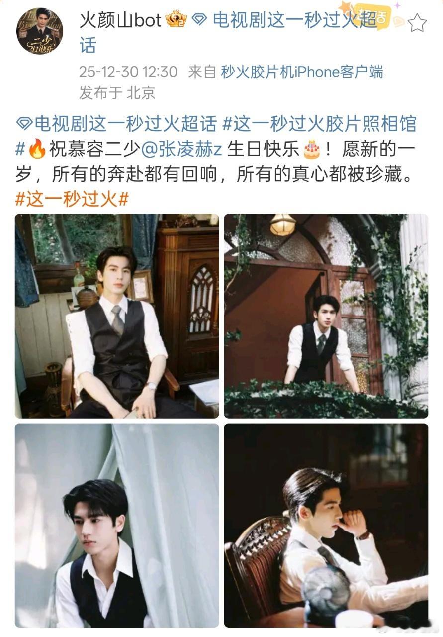 这一秒过火张凌赫1230生日快乐 海报特辑胶片+卡零点卡生日点……小号还换了状态和背景头像,这秒火庆生好会整活,好用心啊hhhh