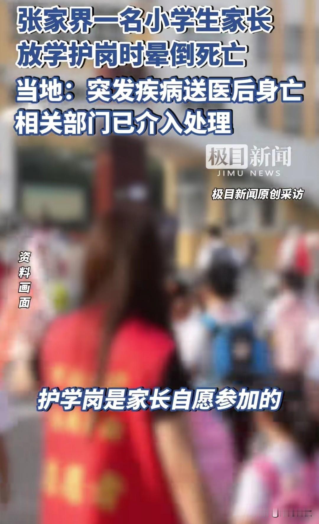 突发:家长在放学时护岗晕倒死亡 上个学真的太费家长了 这名家长45岁,孩子上三年级 上岗不到2分钟就晕倒了 既然来上岗了,在这之前应该没有很不舒服 这一下整大了 一直被家长诟病的上学放学家长义工会怎样 据很多家长吐槽 这种岗不是自愿的 都是班级里面分组轮岗 不去的话孩子可能会有压力