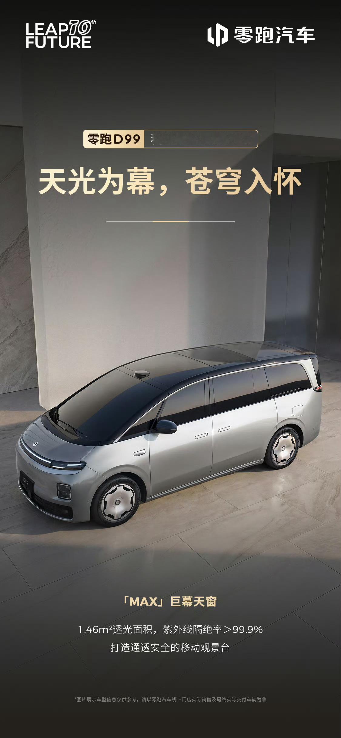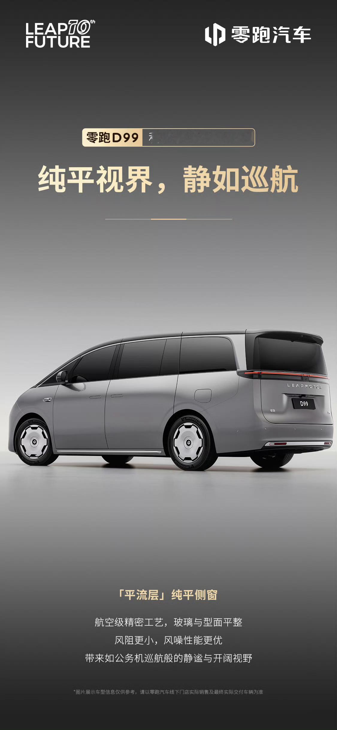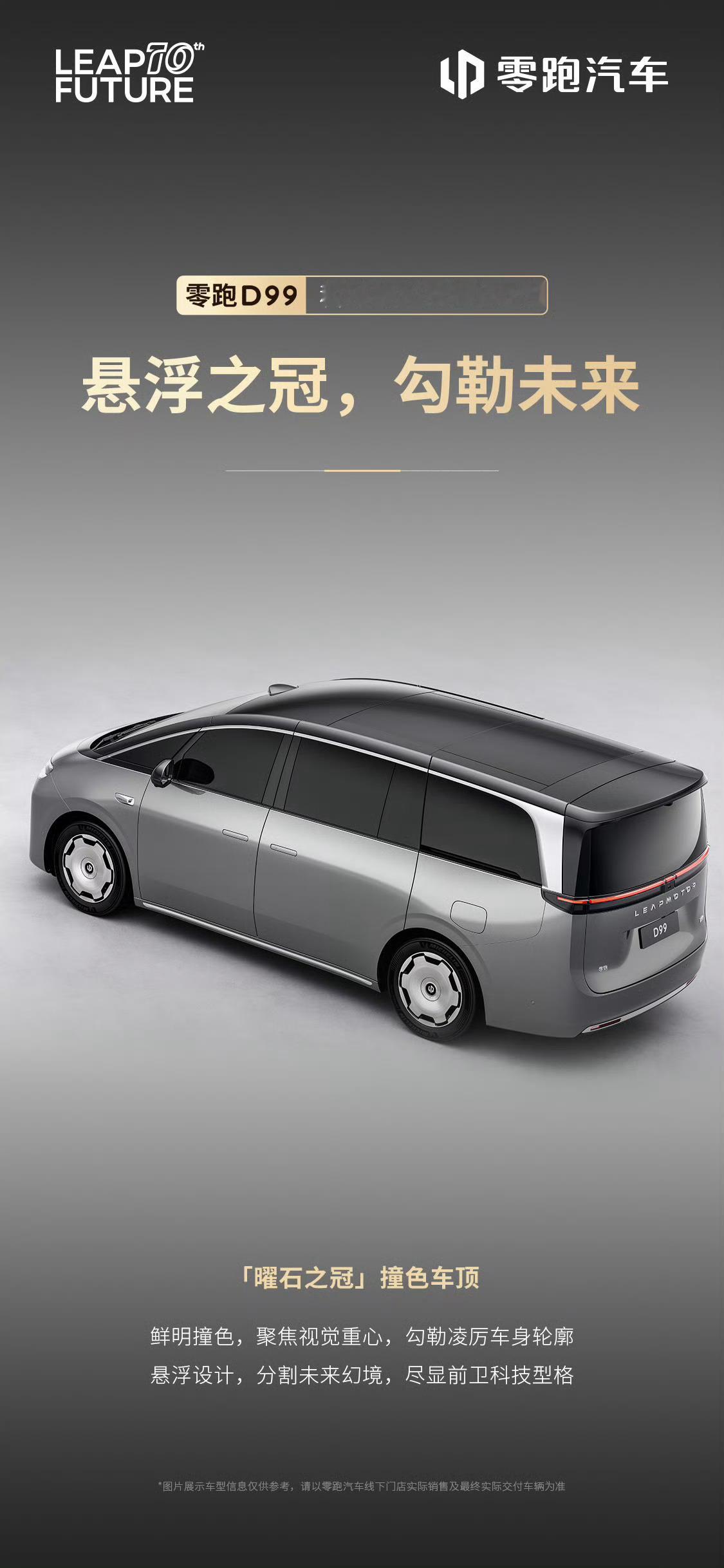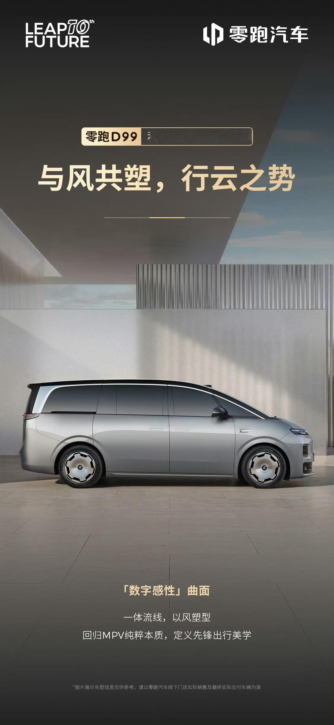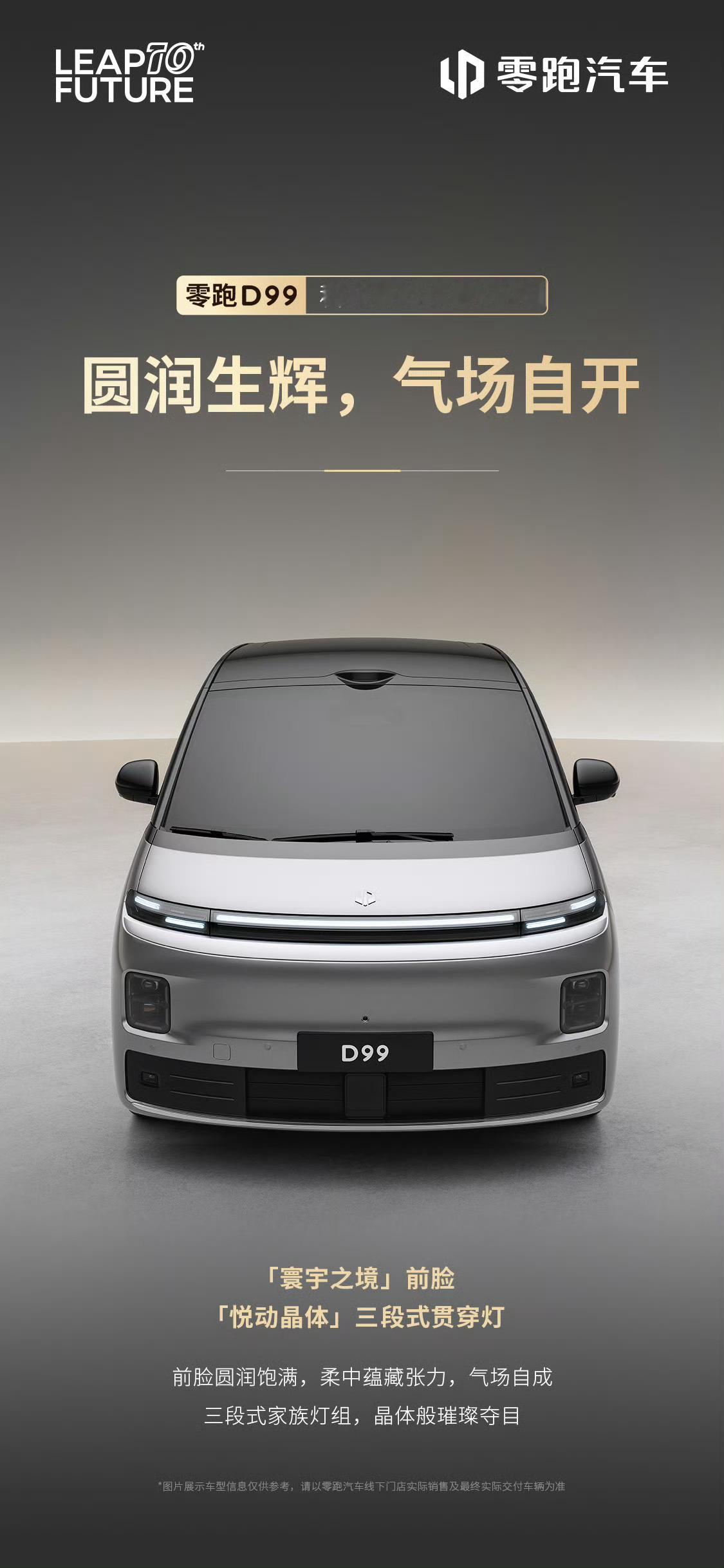 零跑十周年,推出的第一款MPV就叫D99,这名字够霸气吗?大家都调侃零跑是“半价理想”,就拿MPV来说,我觉得D99这套外观同样很有特点,在大众接受度上应该会比MEGA高不少。大家觉得呢?
