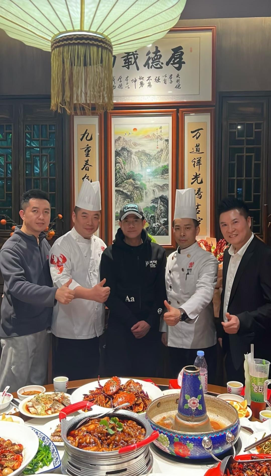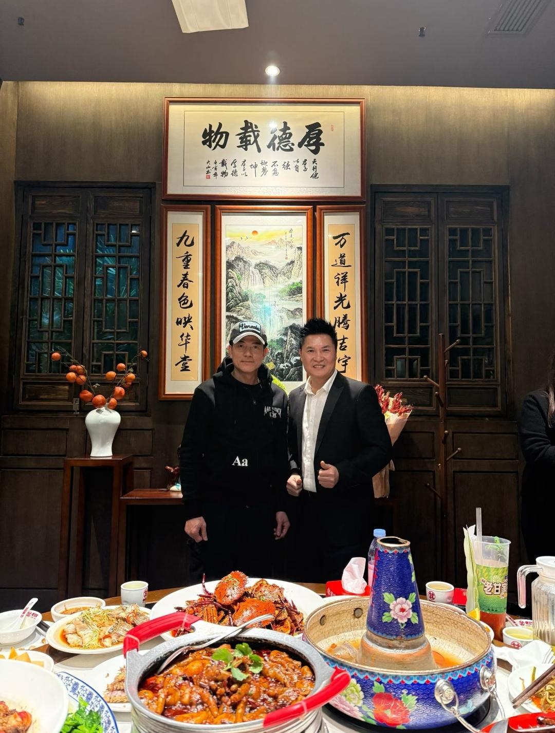 12月29日,郭富城现身重庆,打卡重庆一美食店,品尝了当地的特色小龙虾。 郭富城穿着一身黑色外套,戴着黑色帽子,进入这家店后,老板送上了鲜花,郭富城与厨师还有饭店的负责人进行了合影。 饭店负责人给郭富城准备了丰盛了特色饮食,郭富城在重庆收到了热情接待。