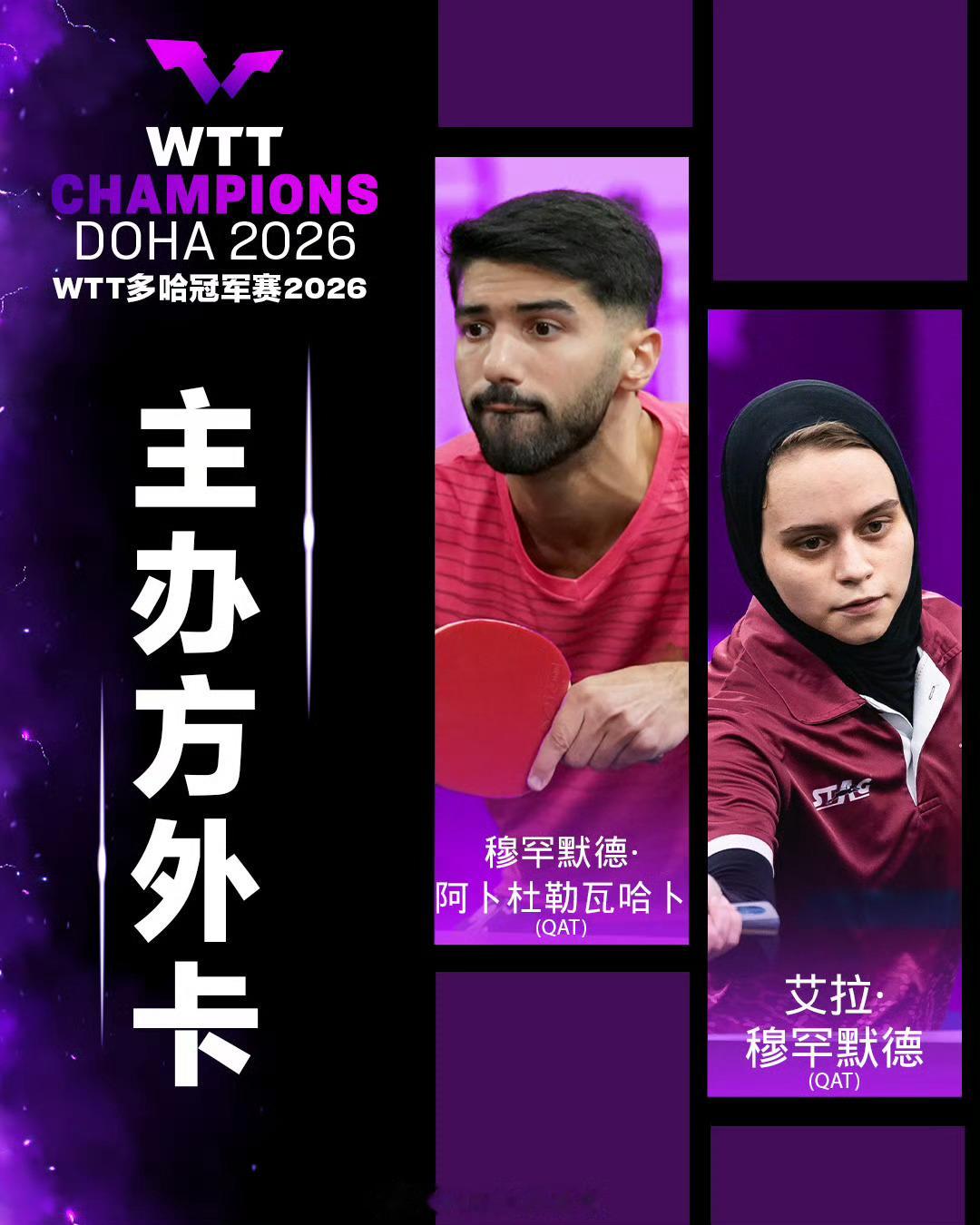 WTT多哈冠军赛2026WTT提名:周启豪🇨🇳、大藤沙月🇯🇵主办方外卡:穆罕默德·阿卜杜勒瓦哈卜🇶🇦、艾拉·穆罕默德🇶🇦