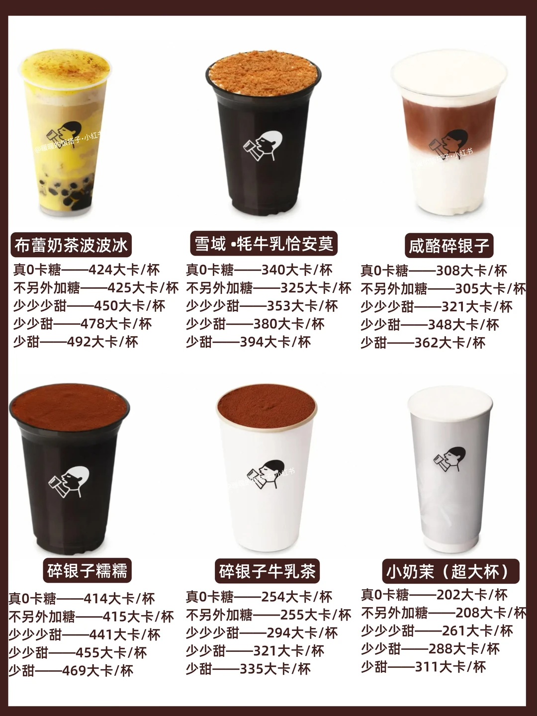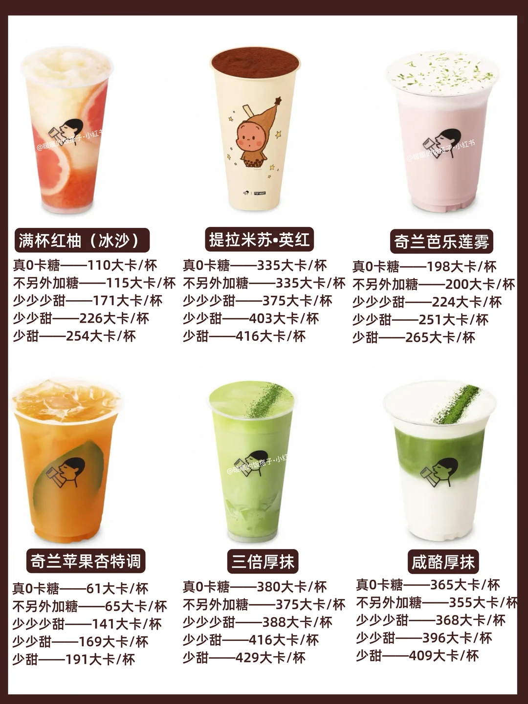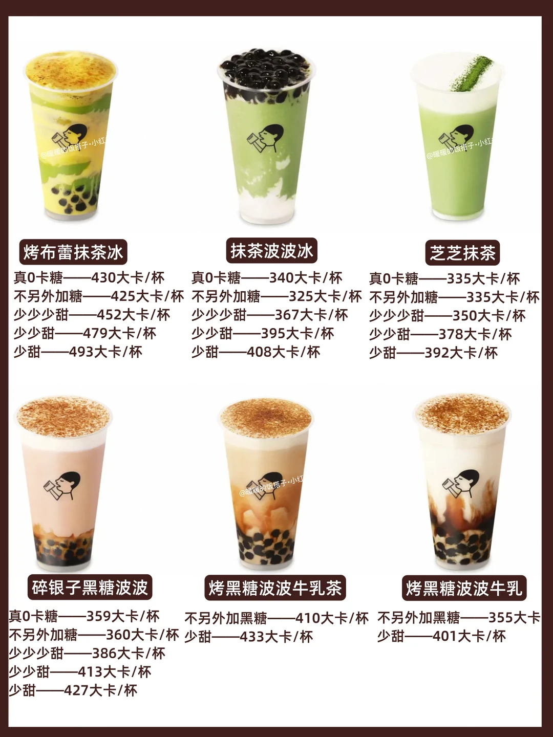 • 避开高热量款:像烤布蕾抹茶冰、厚抹、黑糖波波等,热量普遍偏高,建议少喝。