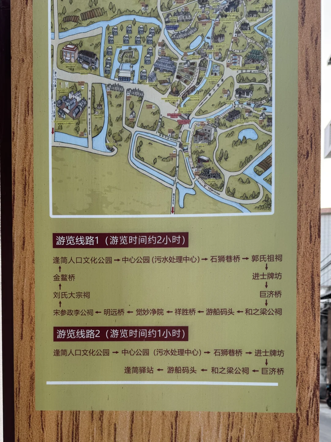 1️⃣这里三座古桥是水乡的灵魂,两座宋代的三孔石拱桥——明远桥和巨济两跟清代金鳌桥。刘氏大宗祠是逢简著名的宗祠之一,始建于明永乐年间,距今已有600多年历史。如今这里已被活化利用成顺德杏坛非遗展示馆,展出人龙舞、龙舟说唱、八音锣鼓、咏春拳、赛龙舟等非物质文化遗产