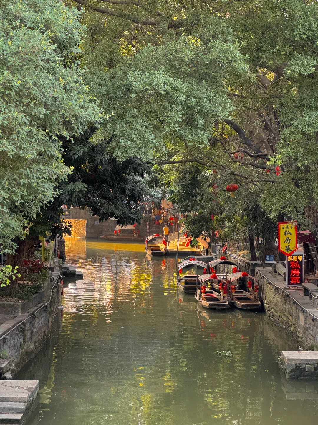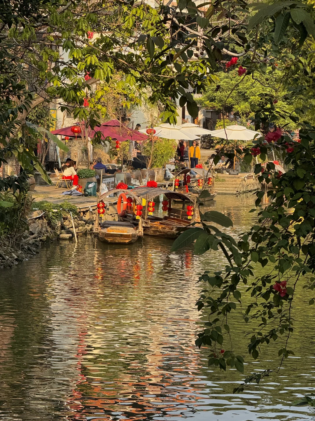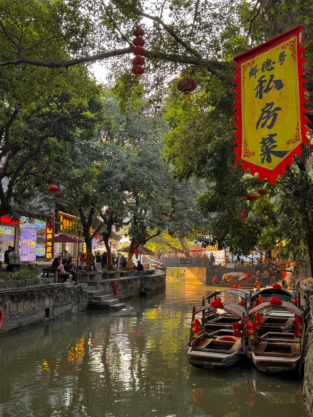 3️⃣乘坐乌篷船游览水乡可以来游船码头这里,小船150可坐5人;大船250可坐10人,全程约30分钟。