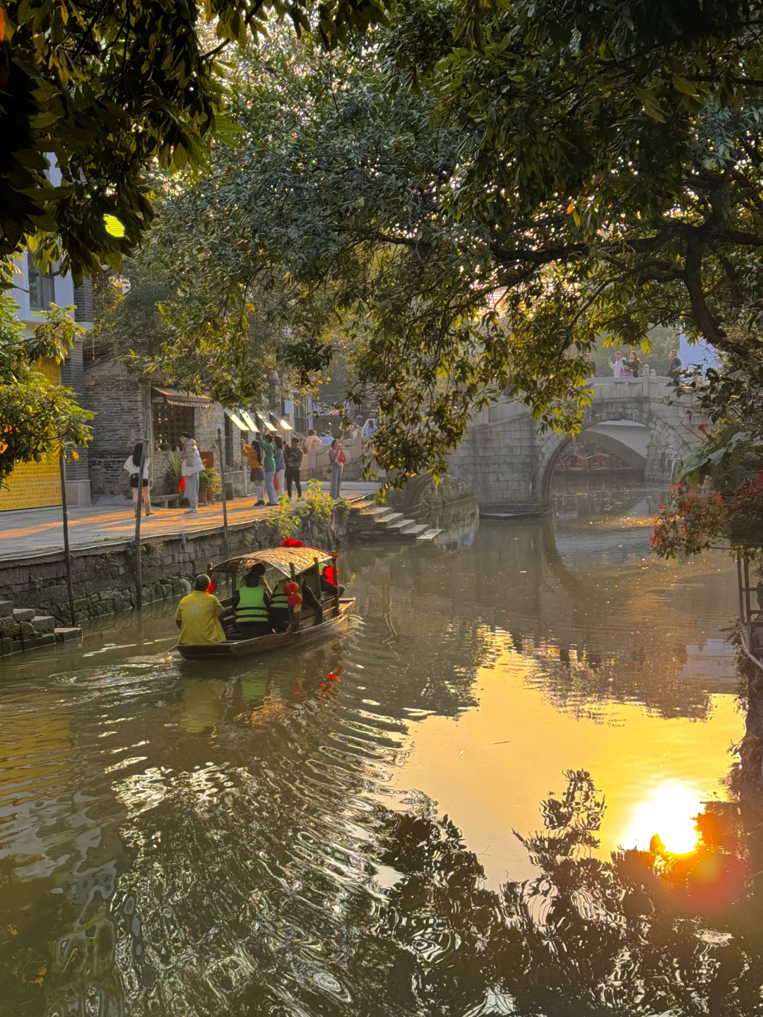 🛶🛶乌篷船不紧不慢地划开这片金色