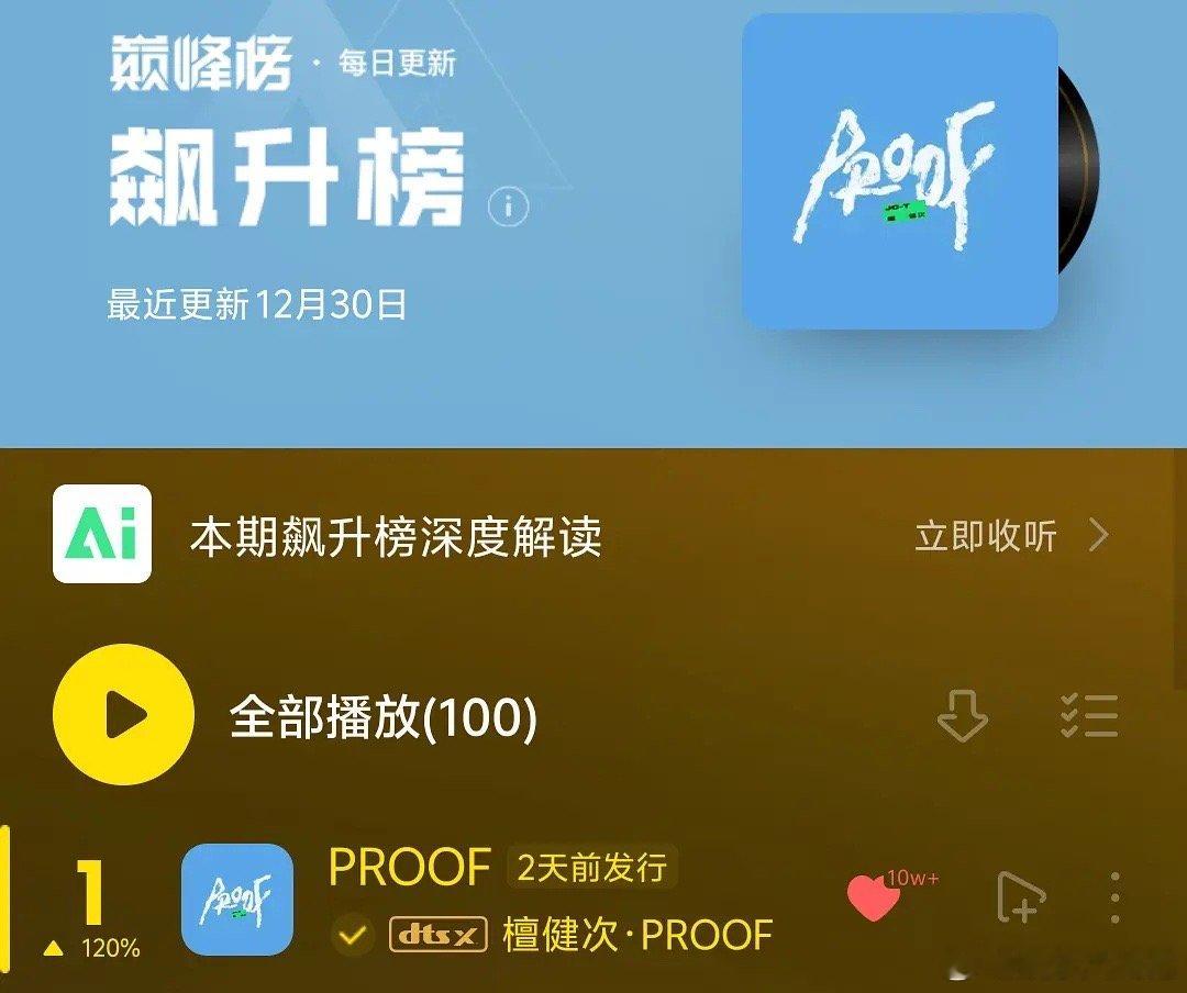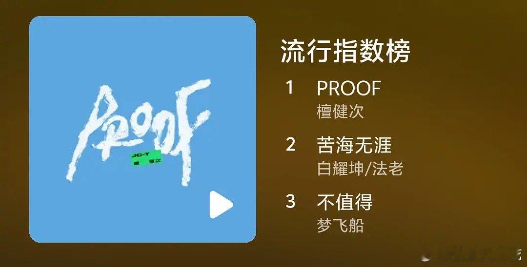 檀健次三专先行曲《PROOF》成绩不错啊空降Q音热歌榜top110个top1好厉
