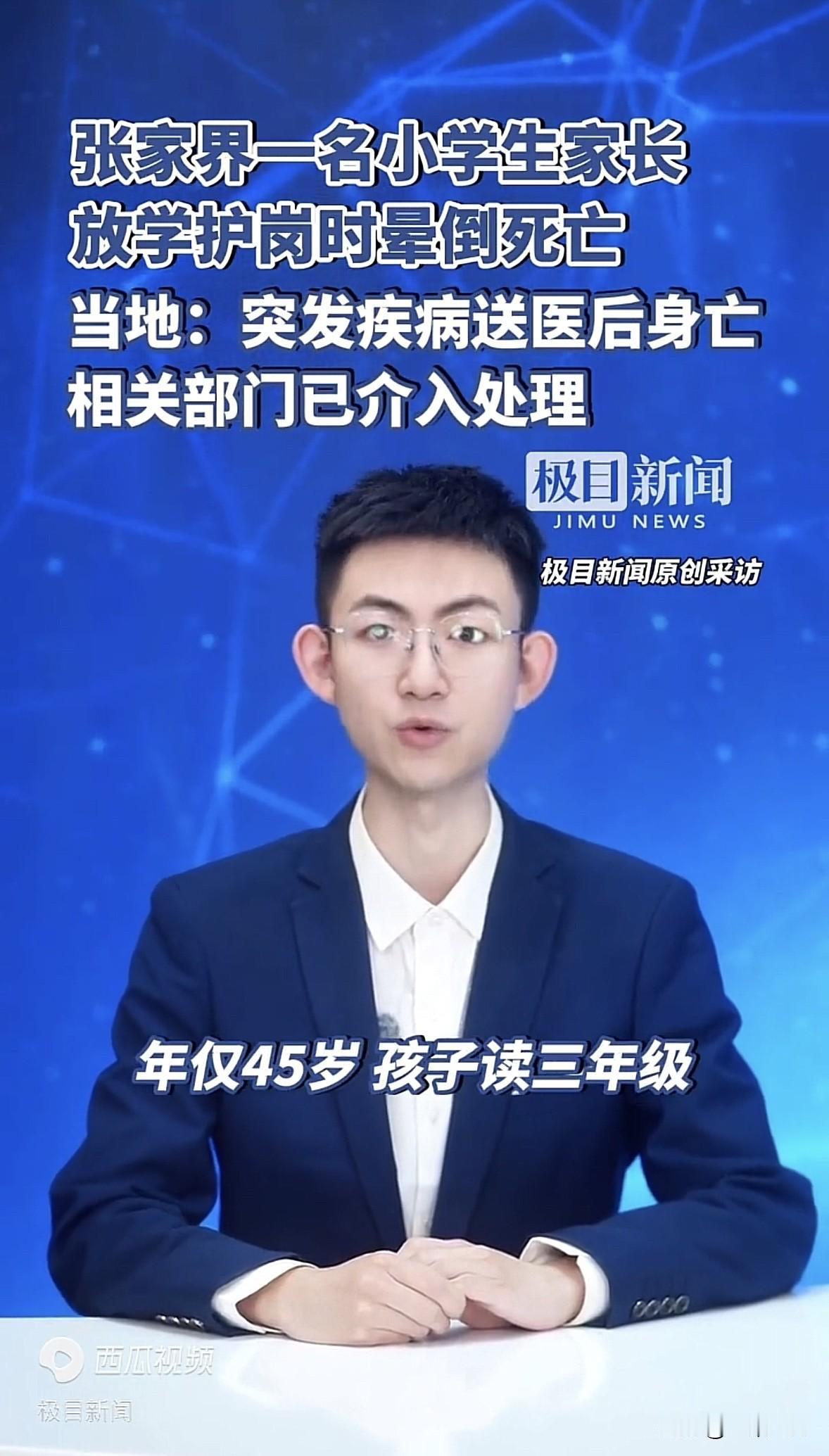 湖南张家界,一45岁男家长参加放学护岗,负责在校门口维护秩序,谁料,他刚上岗2分
