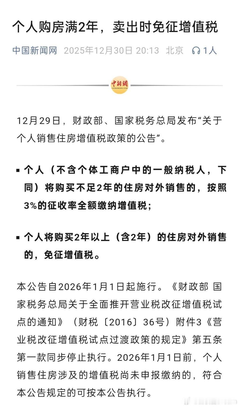 增值税🔻个人购房满2年,卖出时免征增值税!