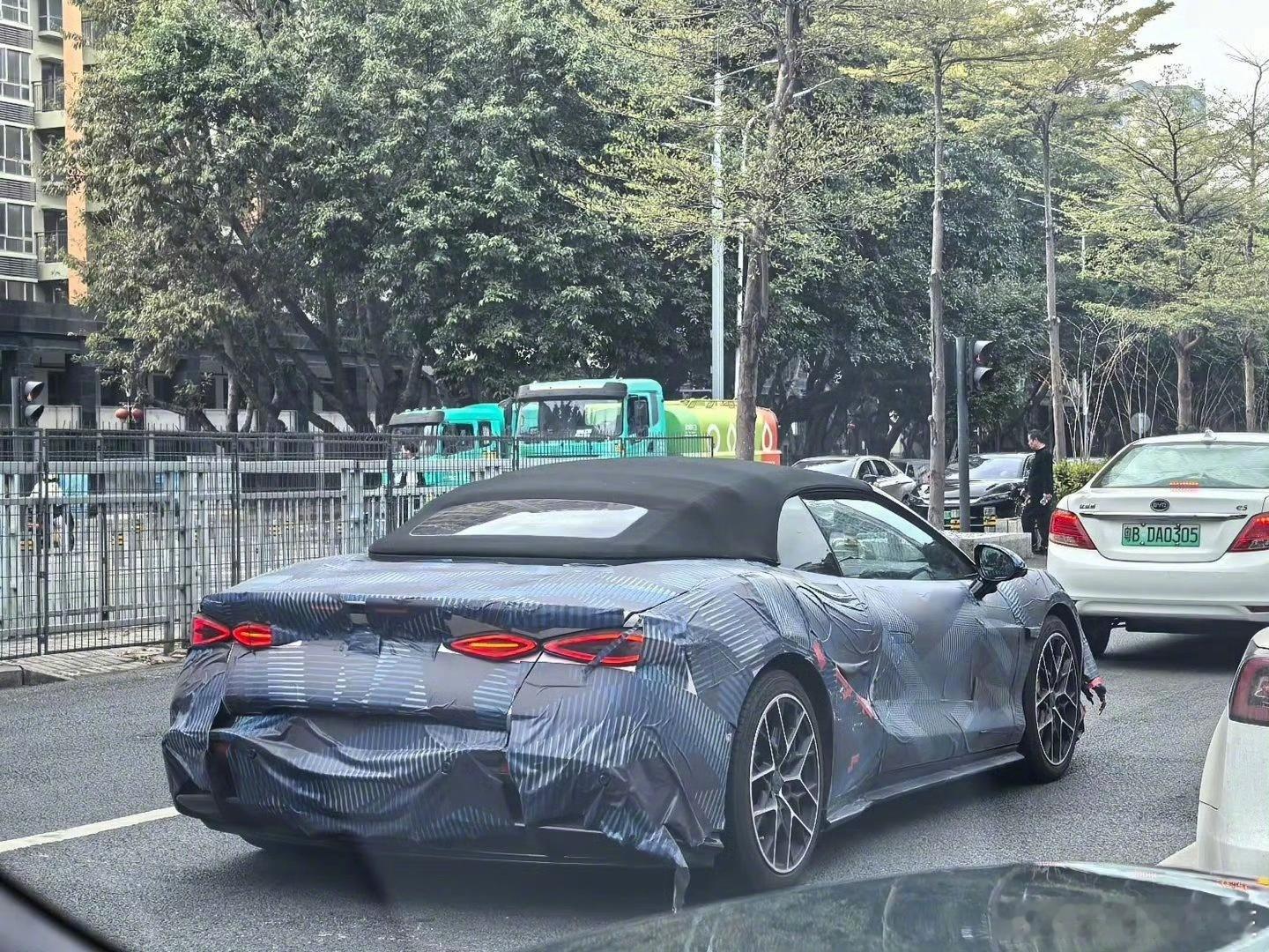 腾势居然造了个敞篷跑车。有网友拍到了路试图,敞篷一直都是小众玩物,不知道这次腾势