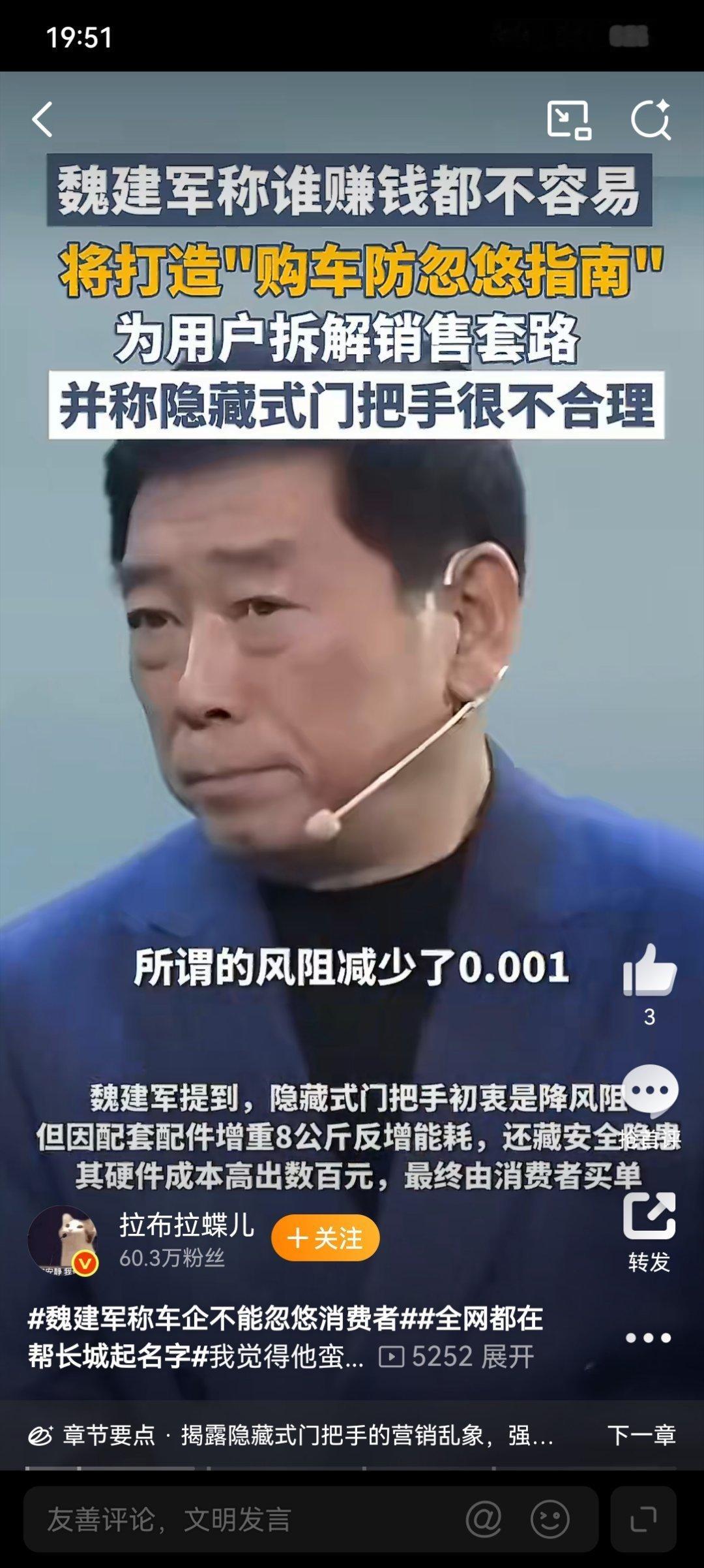 魏建军称车企不能忽悠消费者魏董这番“不忽悠”的表态很实在。车企竞争最终是技术和服务诚意的较量。网友脑洞大开,但产品内核才是根本,省下营销泡沫,让利用户,才是“心疼钱袋子”的真担当。全网都在帮长城起名字