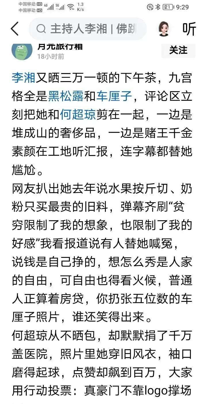 5亿一场直播,李湘又悄悄翻倍 她没再喊买它。情人节那档,后台跳出的GMV是8000万,飞瓜同步更新,直接刷新自己去年5800万的纪录。奢侈品客单价高,退货率却低,现金流比当年快综艺更稳。 手里的牌不止一张。火花科技刚拿到B轮,估值飙到50亿,她占12%,账面又多6亿。浅水湾那套老洋房,中原地产报涨18%,挂牌价破1.2亿港元,租金抵掉伦敦公寓的贷款还有剩。 女儿王诗龄跟着涨价。博奈顿学费涨到38万一年,Burberry童装销量却涨25%,Dior干脆把亚太儿童线大使给了她。母女同框一次,品牌方直接打款七位数,IP比股票更抗跌。 14家公司里,5家悄悄加了人工智能业务。和芒果TV合资的MCN,她占49%,签下的第一批小艺人都带着“李湘系”标签。流量、资本、地产、科技,一环套一环,利息越滚越大。 普通人看热闹,聪明人学门道:先把现金流做成资产,再把资产变成股权,最后让下一代的名字也印在合同里。