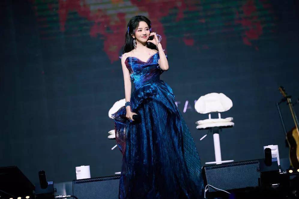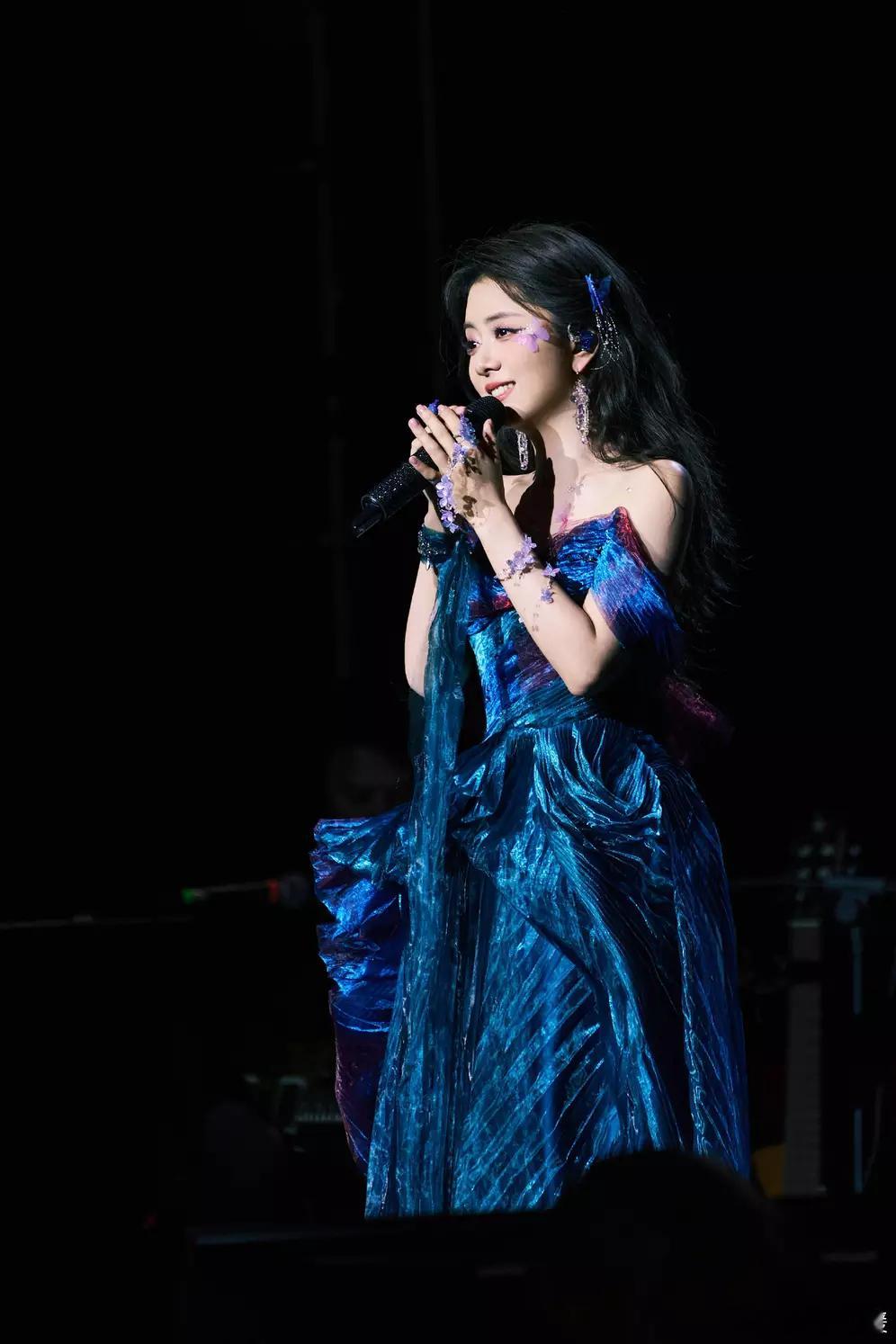 文亦娱乐谭松韵穿蓝紫色抹胸裙唯美动人!宛若幻蝶仙女魅力十足
