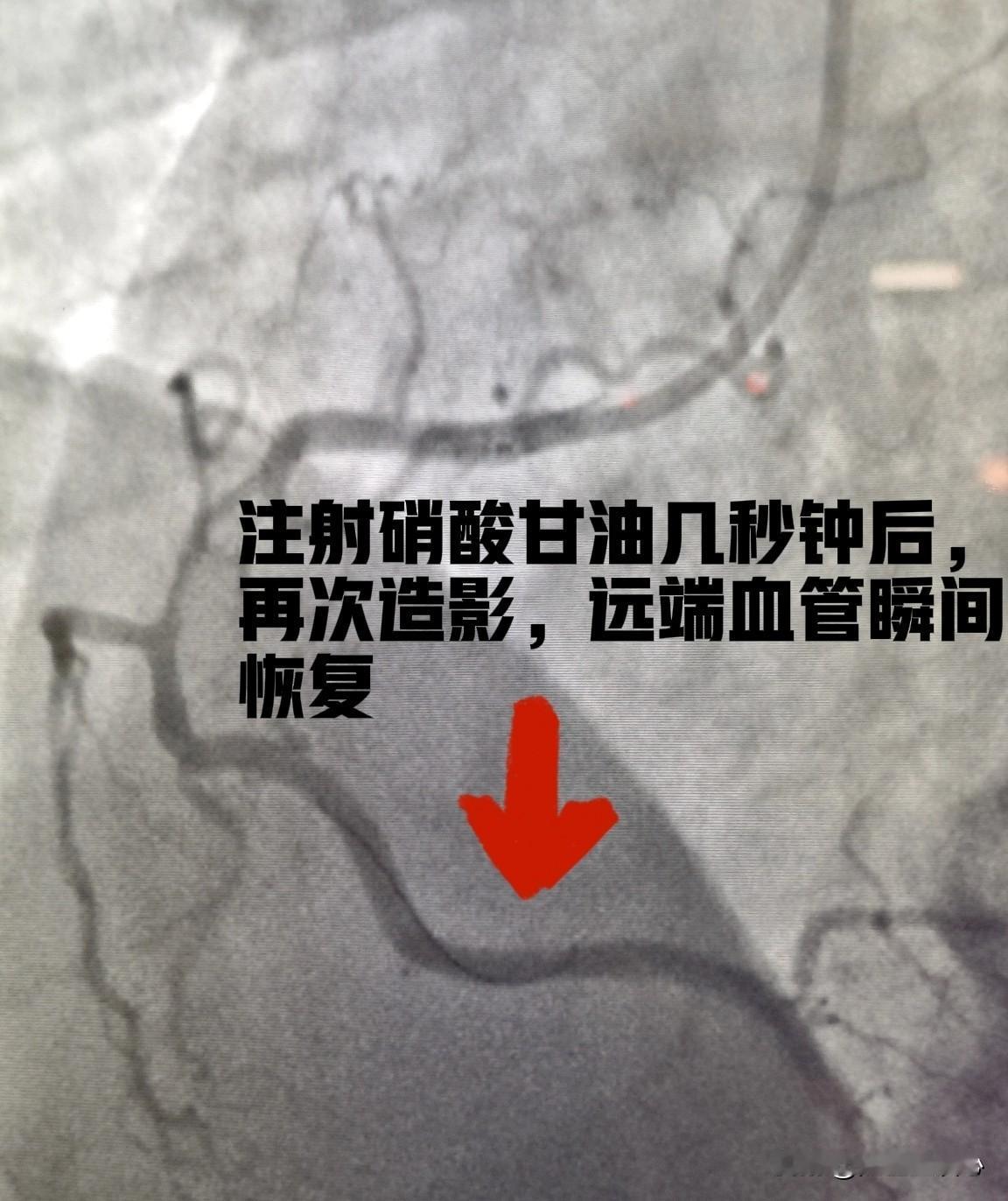 来!直观感受一下硝酸甘油对心脏血管的扩管作用,血流一下子通畅了。 这是一个53岁