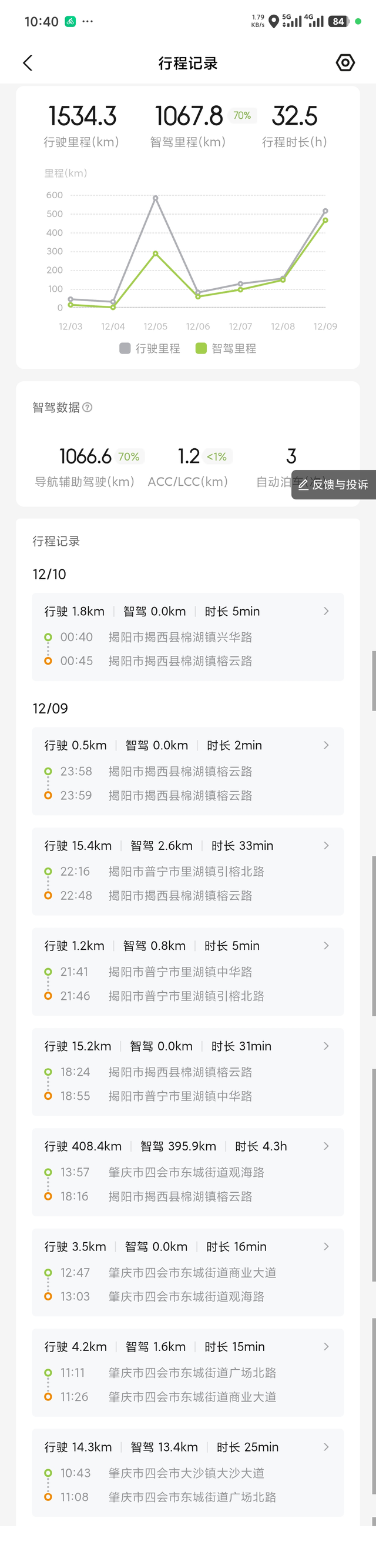 高速续航测试 高速续航还行可以的,充满560,高速全程125从四会直到家里行驶462km 表显还剩71还不错。(刚上高速,预测目的地还剩十几二十多km,后面慢慢的回升90km。)智驾还行,也是从头开到尾。除了高速部分路段有维修,要跨线。需要手动外,其余没啥问题。有一说一这个5G流量是不够的,我一上车就开手机热点。