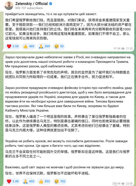 小泽索要1000亿欧元的赔款! 而且这还是仅仅两年的赔款,总数肯定要更大,所以大鹅是坚决不肯停战的,也不可能认输。一旦认输的后果,那就是几千亿欧元的战争赔款,那谁能赔得起?目前大鹅在欧洲被扣的资产,据说有2700亿美元左右,把这些资产全部扣除,也不够赔偿乌克兰的损失。 所以乌克兰还要继续索赔,索赔的越多越好。对于这样的现实,只能说乌克兰还是不会放弃索赔的希望。当然这样的索赔,肯定是自己哄自己。大鹅在历史上也很少有赔款,真正赔款较多的,还得是大清,什么条约都敢签,什么赔款都敢赔,这也让世界知道了战争赔款,可不是轻易要开启的。 在这个世界上,小泽还是没搞清楚责任和实力,要想得到大鹅的赔偿,那是绝不可能的。因为没有人会惯着乌克兰。也就欧洲能够帮助乌克兰御敌,大鹅是绝对不会赔偿的,除非大鹅像苏联一样解体,否则绝不可能赔偿。 大鹅手手里面还掌握着真理,那就是蘑菇蛋。而蘑菇蛋在手,怎么可能赔款,换谁也不可能。