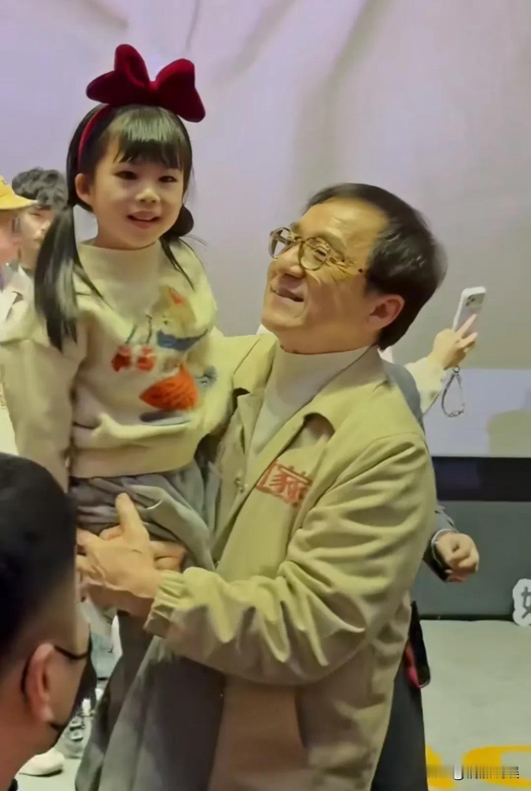 看到这个画面,就知道事业如此成功的成龙,人生中的遗憾是什么了。 在他的新片《过家家》首映礼上,一个头戴蝴蝶结的小姑娘,去找成龙签名。成龙看到后,大步走过去,伸开手就把她抱起来。 笑得满脸皱纹的成龙,抱着小姑娘一脸的慈祥,就像爷爷抱着孙女一样,然后还开心的亲了小姑娘一下。 年过七十的成龙透露每年和儿子最多就打一次电话,还开玩笑说要是王力宏是他儿子就好了。[捂脸] 这不就是妥妥的老一辈人的思想嘛,人到老年,望子成龙,儿孙绕膝。 他娇妻有了,钱有了,事业也有了,就这两样却还没有,确实是心里有遗憾的。