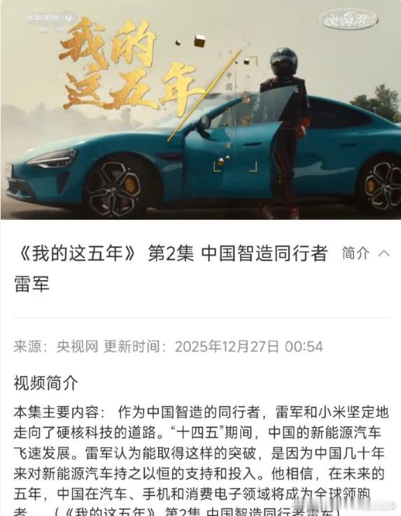 央媒年终盘点集体点赞小米 这几年小米的进步是肉眼可见的快,不管是造车、造芯、还是智能制造和AI,小米多项投入都取得了成果和落地,小米这些硬核技术创新的涌现都是和国家战略的方向一致的大路线。从央视等官媒的年终盘点视频里频频出现小米,也能证明国家对优质民营企业的支持力度之大,作为国产创新的中坚力量,小米真是顶着压力用自身行动来实干创新,希望小米新的一年继续稳扎稳打,用技术质变拿出更多创新产品!