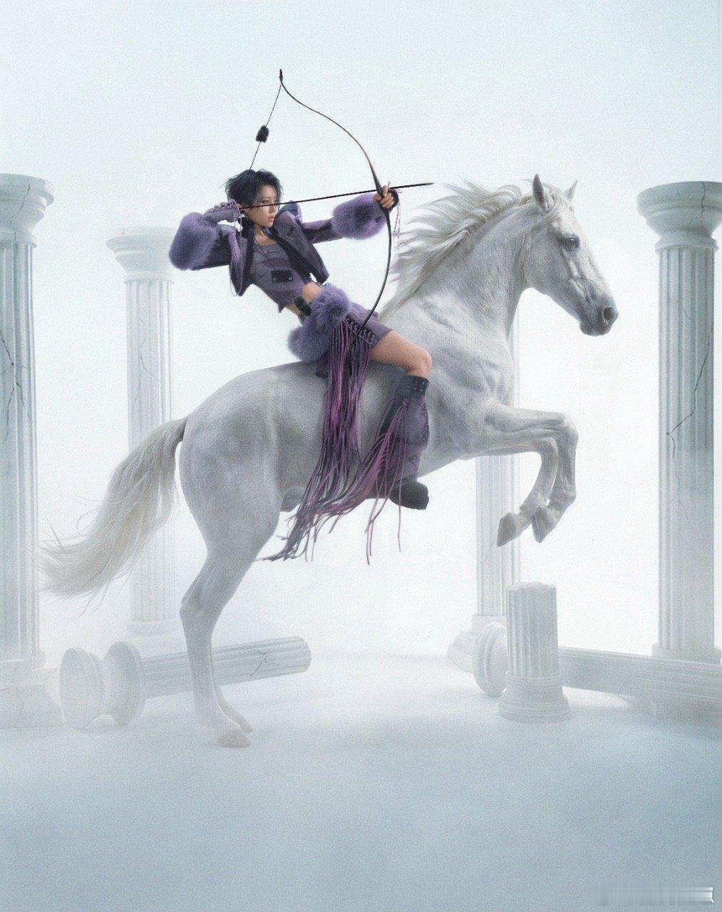 刘雨昕这下真破次元壁了刘雨昕用马背上的弓箭造型打破固有印象,每一个定格都充满力量感,野性的气场搭配精致的造型细节,高级感直接拉满。