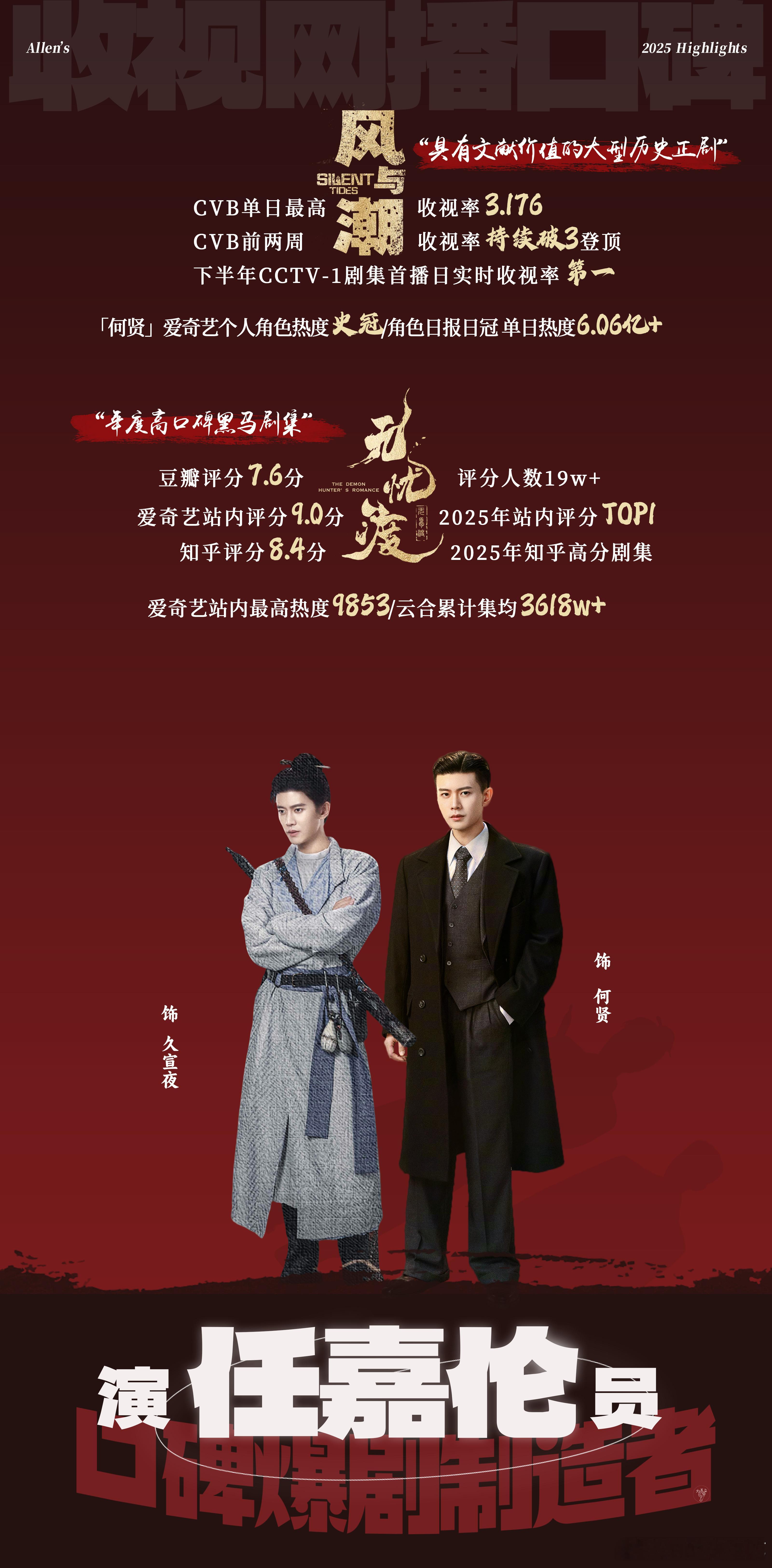 任嘉伦2025收获满满!🎉🎉《风与潮》央一收视破3《无忧渡》口碑热度皆收一年三剧上星率满格