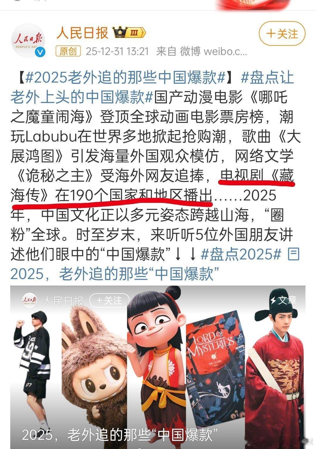 肖战《藏海传》作为优秀文艺作品,被多个官媒提名表扬了