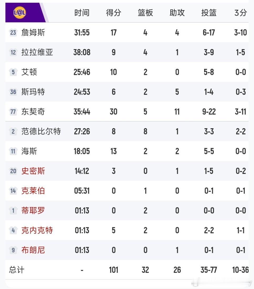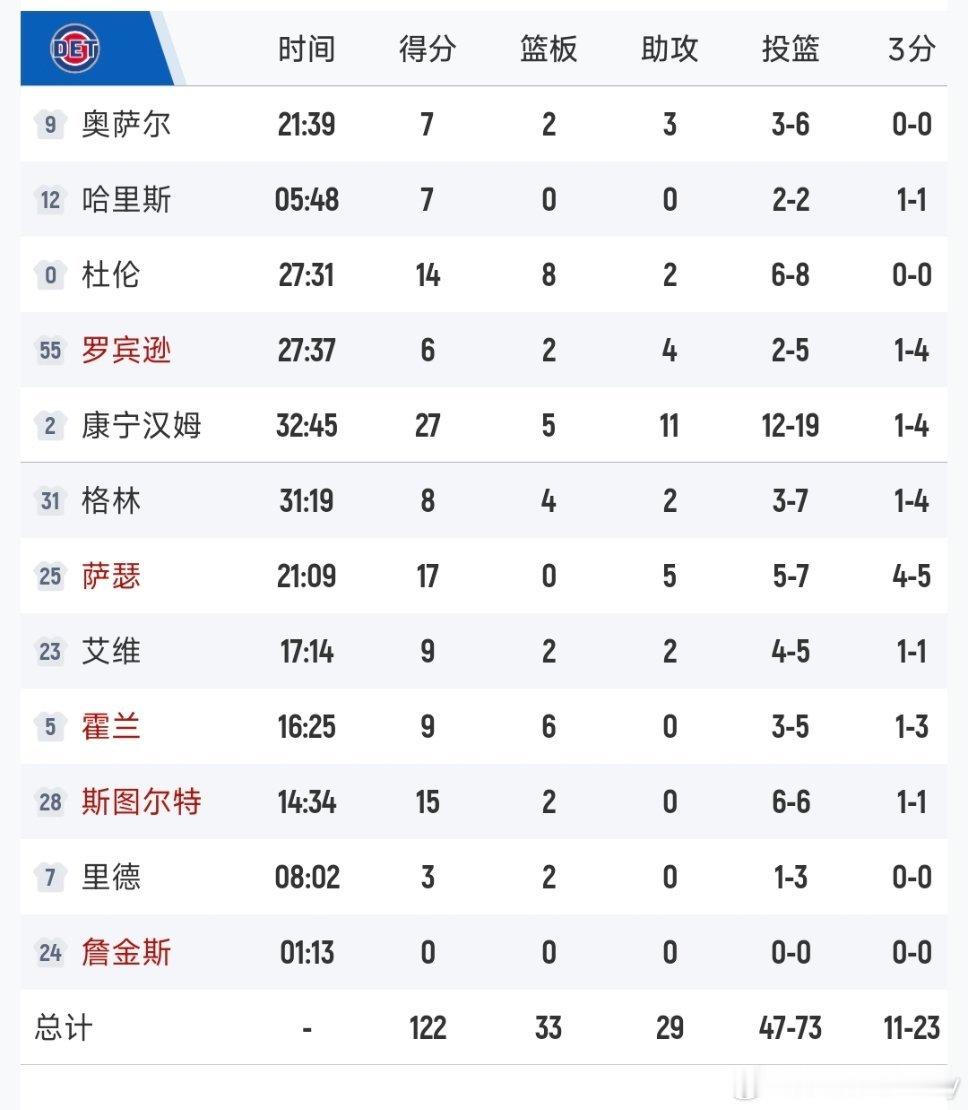 湖人投了,詹姆斯生日之夜湖人不敌活塞,近5场比赛1胜4负。坎宁安27分11助攻,东契奇30分11助攻,詹姆斯17投17分。活塞vs湖人