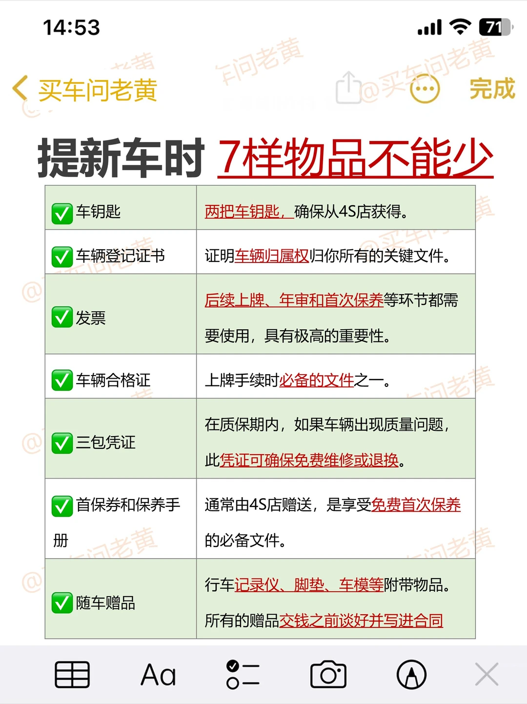 ✅图7-9"全网朂全 提车验车清单"