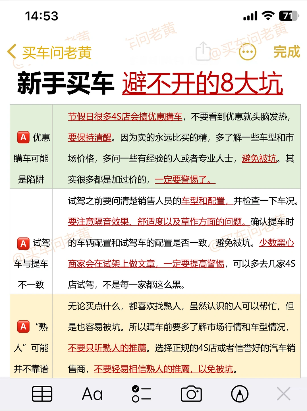 ✅图4 "关于买车的坑 建议收藏"