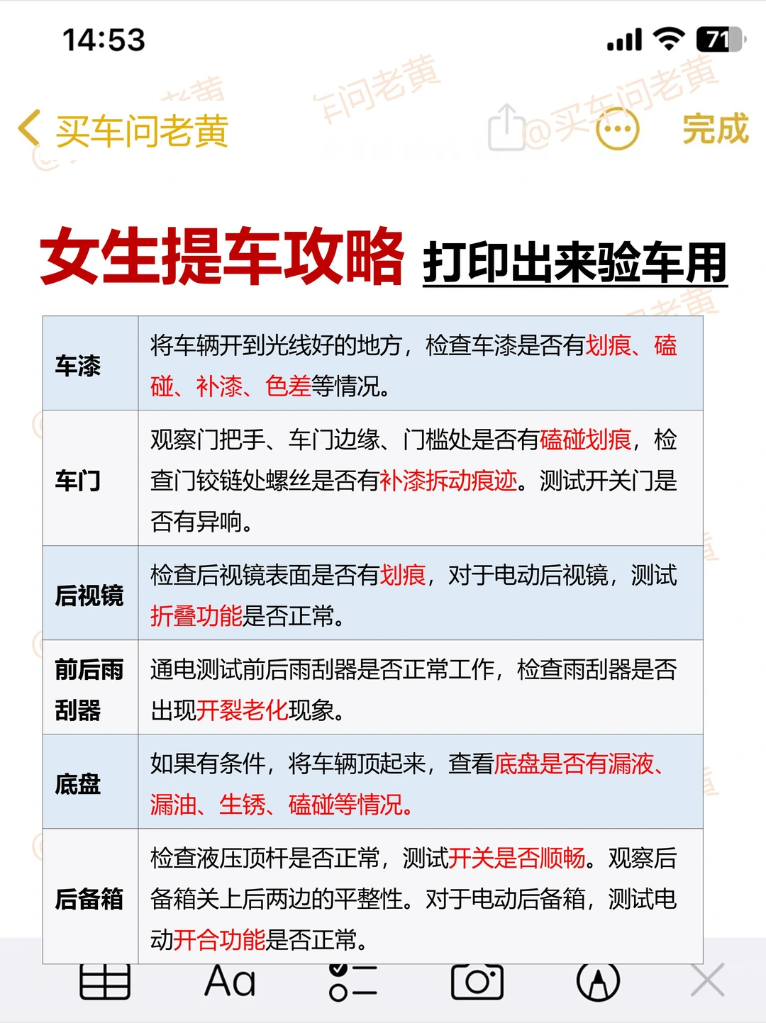 ✅图6 "女生提车攻略 打印出来验车用"